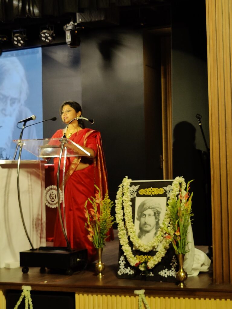 The audio drama was followed by a host of cultural events. Several songs created and penned down by Tagore himself were performed by the students and the teachers. The Invited guest singers were Rajnath Das (with Arup Bagh){English department} and Prof. Apalak Das (Rani Birla girls college). It was followed by a row of elocoutionary endeavor by the teachers and students of the college. Dance performances were showcased by the students to pay tribute to Rabindranath Tagore. The students also staged an enchanting performance of ‘Natir Puja’ an adaptation from Tagore’s verse ‘Abhishar’. More than 150 participants (40 teachers and 110 students) joined this day long cultural programme from our college. The programme was concluded by the vote of thanks delivered by Dr. Mili Sammaddar, Head of the Department, Bengali.