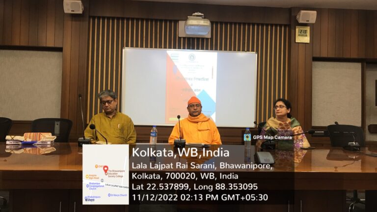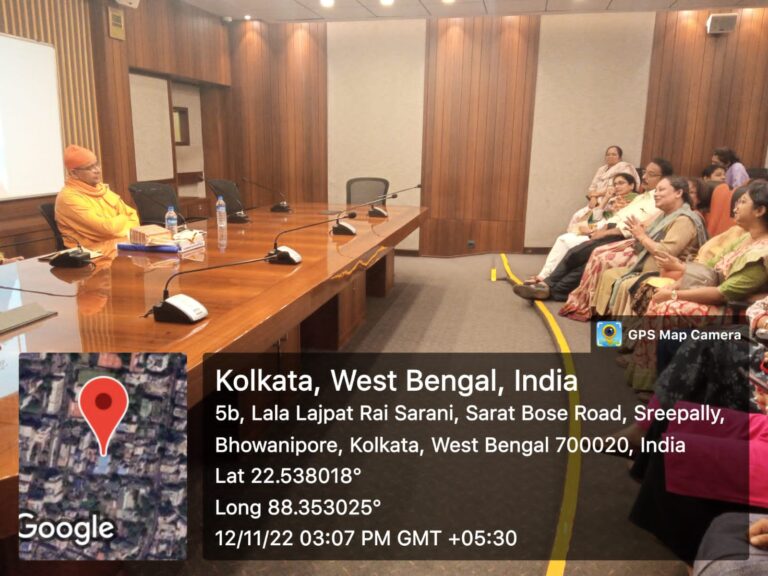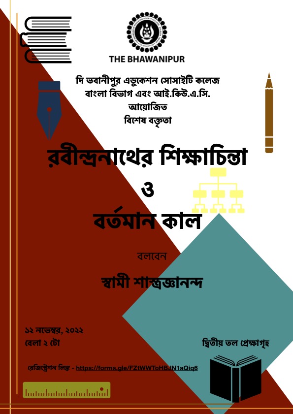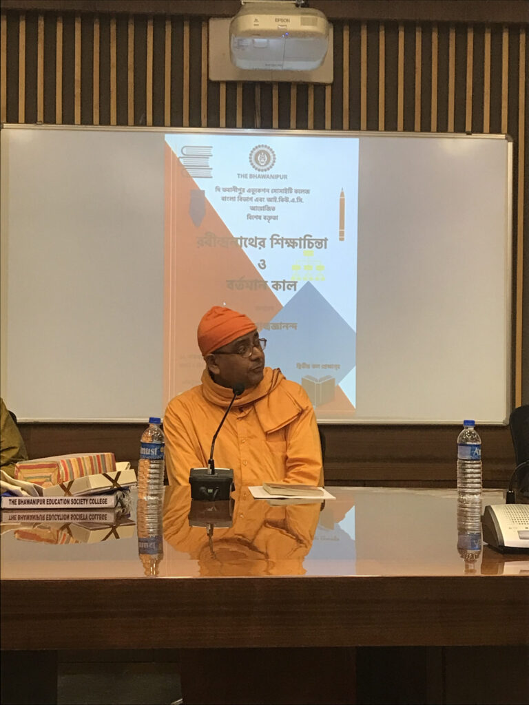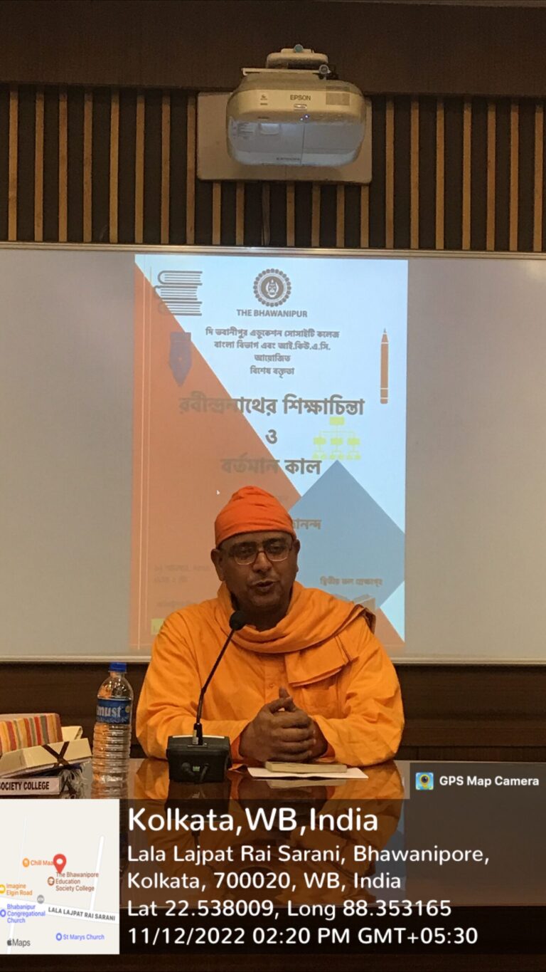 The Department of Bengali in collaboration with IQAC organized a special lecture on Rabindranath er Shikhachinta o Bortomankal, held on 12th November 2022 at 2.00pm. The esteemed speaker of the lecture was Swami Shastrajnanananda (Secretary, Saradapith, Ramkrishna Math o Mission, Belur & Former Principal of Belur Vidyamandir and Narendrapur, Ramakrishna Mission College). The event took place in the second floor auditorium. Swami ji discussed how Rabindranath Tagore practiced and propagated education as a continous learning process. He further explained that Tagore believed that knowledge helps to emancipated mankind from ignorance and lead the civilization towards a higher form of consciousness and moral enlightenment. Swamiji narrated many insightful events related to Tagore’s life as the Vice Chancellor of Vishwabharati, which clearly indicated his liberal and dynamic approach towards value education. Swami ji further explained that there is a huge gap between Tagore’s way of educating the young minds and the contemporary outcome based education system aimed at alienating the young souls from creativity and freedom of deliberations. He concludes his lecture with the remarks that while present education policies are more hard power oriented and mechanical in its approach, on the other hand, Tagore’s philosophy and thinking on education was more inclined towards soft power approach based on literary and cultural ideas and value system. The presence of  25 teachers and 20 students made the program a huge success.