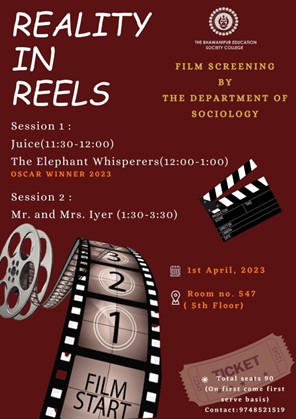 On 1st April, the Department of Sociology organised a film screening event, “Reality in Reels”. The aim of organising this event was to vitalize the critical thoughts of students about the deep-seated affairs of the society through the lens of cinema. Three films were projected namely ‘Juice’ a Short film, the Oscar winning documentary ‘The elephant whisperers ‘ in the first session of the event and ‘Mr. And Mrs. Iyer’ in the next half. For each session there was a post screening discussion, the same was conducted by Prof. Arup Ratan Samajdar from Film Studies department in the first session. With the students and teachers participating in the screening and the post screening discussion, the event of “Reality in Reels” was a success.