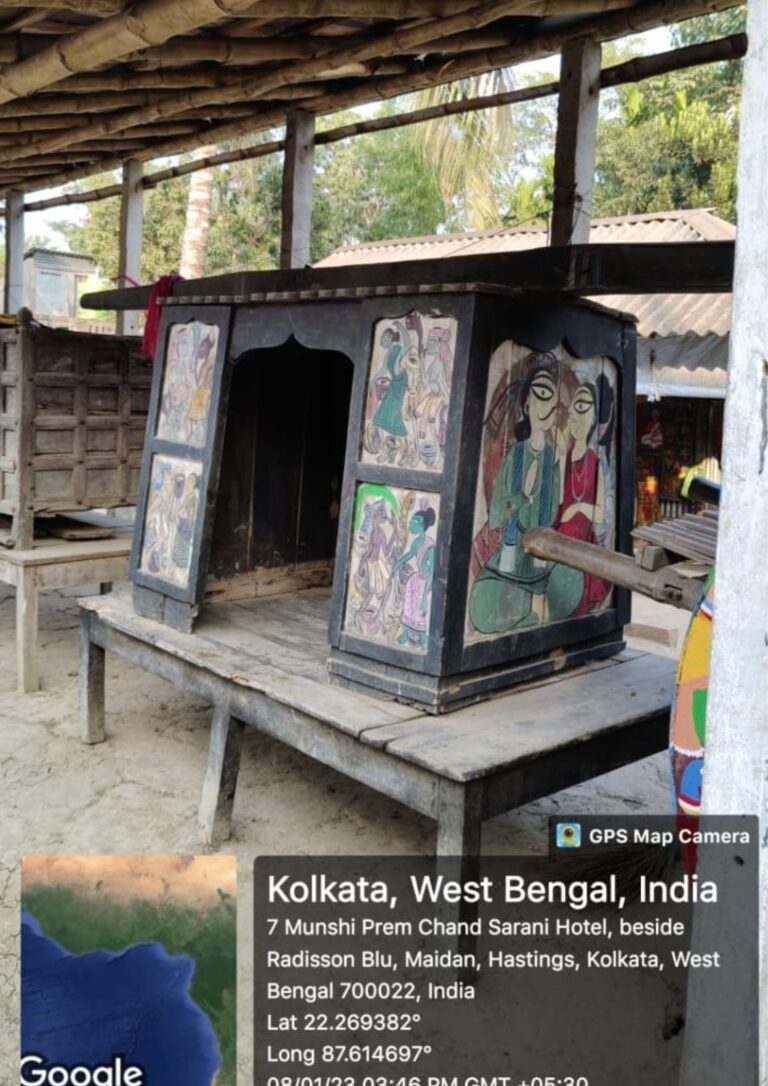 Pingla is basically a flourishing hub of more than 350 artists where they have formed a cluster named Chitrataru in 2011. The reason of the formation of the village focuses on the training of the next generation in this art form and also for the better opportunities of the local people with the special ability of their innovation. Patachitra is an old form of art in Bengal. The Patuas use natural colours which they extract from leaves, flowers, seeds of various trees and they not only paint, but they also sing to describe as they unroll the painting scroll to show it to the people. These songs are specially known as Pater Gaan. The songs and paintings are basically based on the old culture, mythological tales of India and also the about the current situation of our world. They form their art works as the tool for social communication and awareness. Chitrakars have painted patachitra on Covid and have composed songs to spread awareness amongst the people of the remote villages. Each and every work there are the examples of fine art and the beauty of simple living