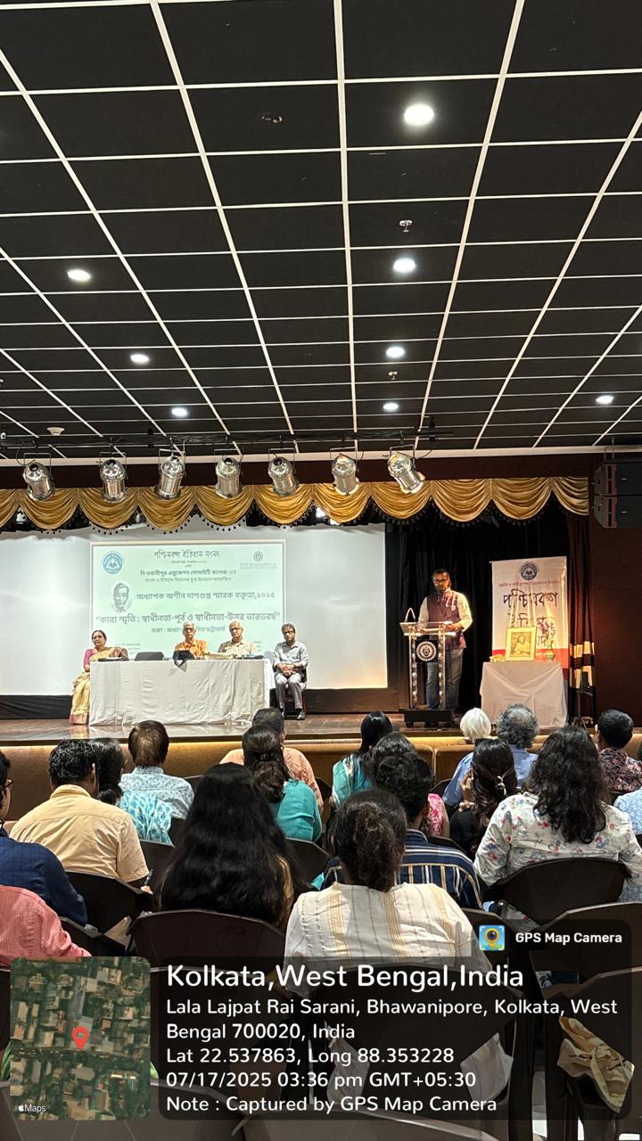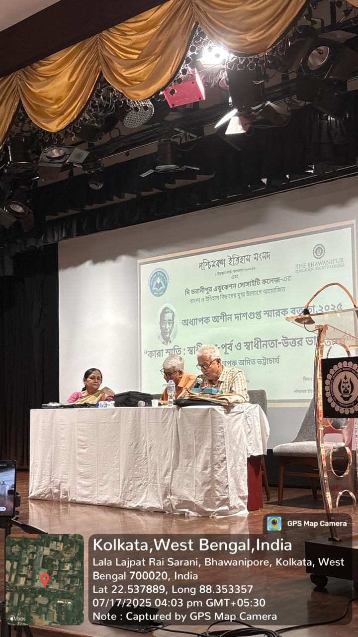 Name of the Activity: The Department of History in collaboration with the Department of Bengali and Pashchimbanga Itihas Samsad conducted the Prof Ashin Dasgupta Memorial Lecture on 17th July 2025. Type of Activity: The activity was a talk organised to raise students awareness about historical researches conducted by eminent historians while also providing an opportunity to interact with history enthusiasts, lecturers, peers from across the city who share an interest in history. Date/Duration of the activity: The event was held on Thursday, 17th July 2025 from 3 to 5.30 pm. Time: 3 – 5.30 pm Details of Resource persons: Prof Amit Bhattacharya, former Professor of History, Jadavpur University was invited to deliver a talk on ‘Kara Smriti: Swadheenta-Purva o Swadheenta-Uttar Bharatbarsho (Memory of the incarcerated: India before and after Independence). Prof Arun Bandopadhyay, former Prof, Calcutta University presided the session. No. of Participants: The talk was attended by 65 participants Objective of the event: The Annual Student Seminar was organized with an intent to develop critical thinking faculties of the students to encourage them to undertake research. They are encouraged to traverse social, cultural, political and economic dimensions of a historical process and explore the interdisciplinary nature of historical studies. Brief Description of the event: The event was an engaging talk that explored prison narratives in Indian history and literature. It began with an introductory address by Prof Arun Bandopadhyay. He spoke about the contributions of Prof Ashin Dasgupta to historical research. The talk commenced with an address by Prof. Debjani Ganguly, Vice Principal of the Arts Department, Bhawanipur College. The Paschim Banga Itihas Samsad committee members expressed their joy and appreciation for the opportunity to conduct a lecture at Bhawanipur College and conveyed their enthusiasm for organizing similar talks in the future. The main lecture by Prof Amit Bhattacharya delved into six notable works written on the theme of incarceration: