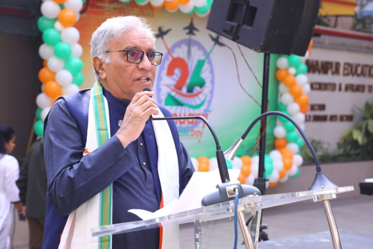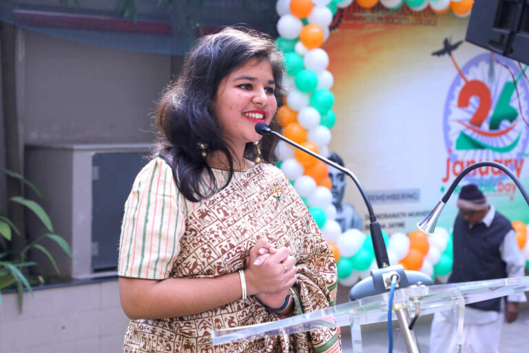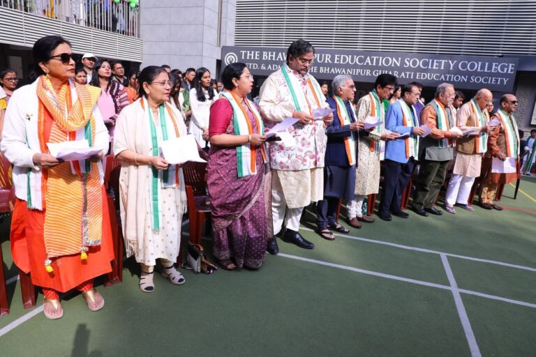 The Republic Day ceremony ended with the announcement of the best-dressed Student & Teacher, which was given to Devang Nagar & Sania Fahim, students of BESC, and the title of best-dressed Teacher was given to Dr. Suchitra & Prof. Vasundhara Mishra. With this Prof. Shah gave a vote of thanks to everyone present & requested the audience to proceed to the Valia Hall for refreshments.
