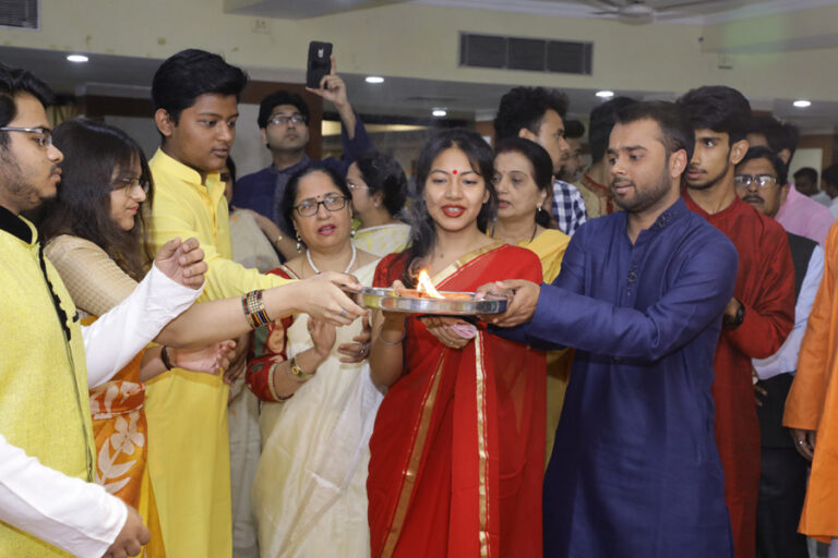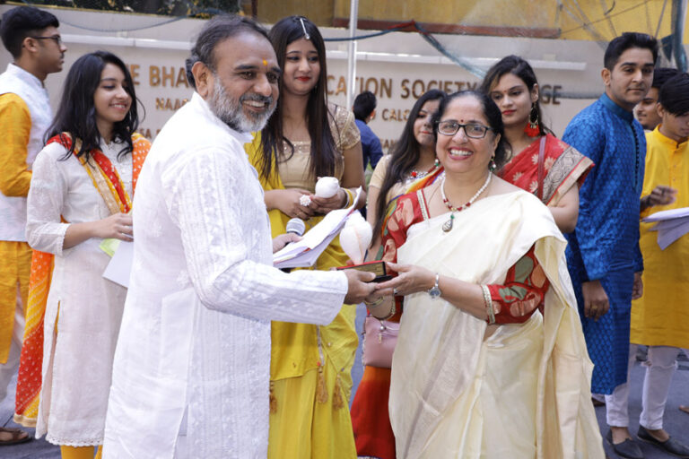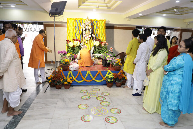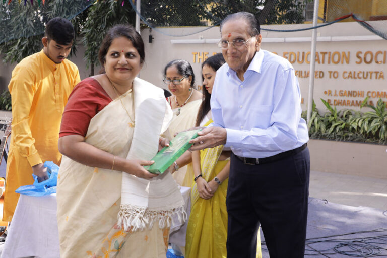 Prof Dilip Shah, the Dean of Student Affairs of the BESC led the students in prayer, as they refocussed and mage the pursuit of knowledge the sole focus of their lives. Once the formal puja was done with, Prof Shah explained to the students the different names with which the Goddess is invoked, explaining their individual significance.