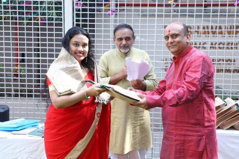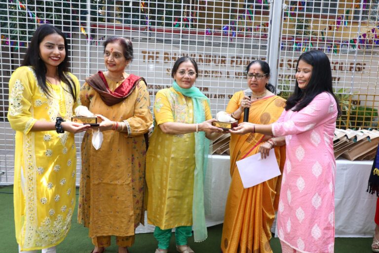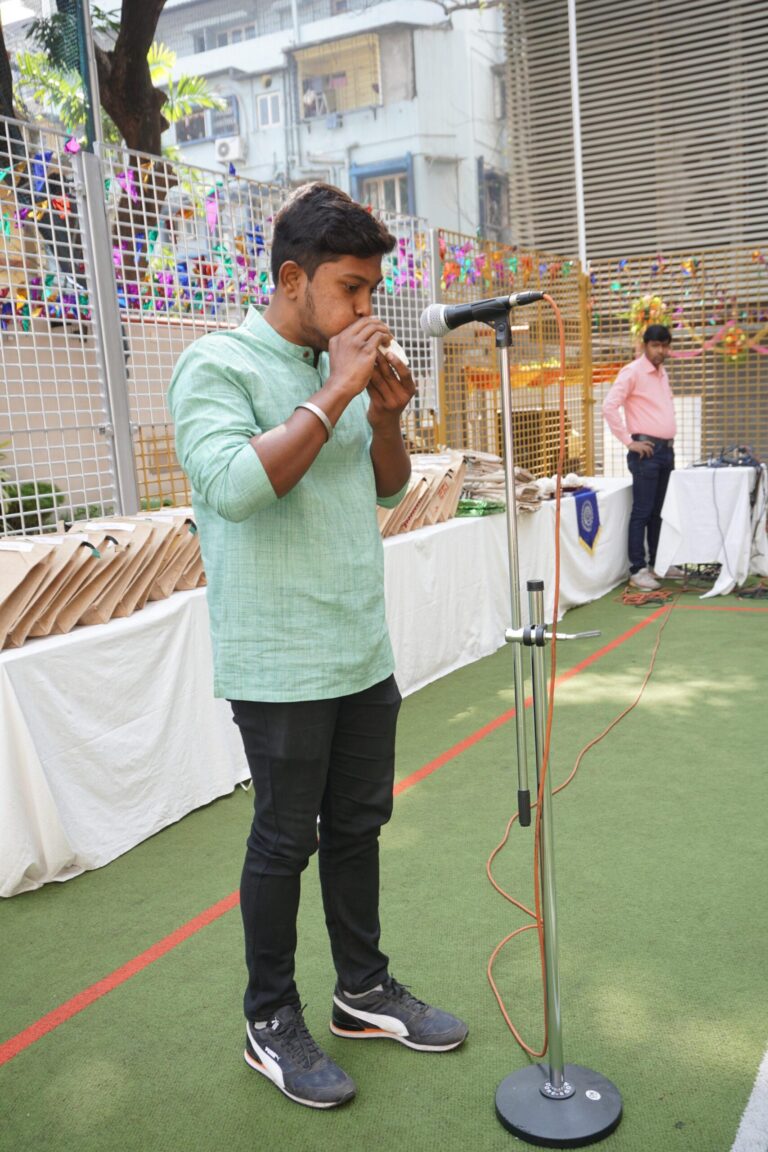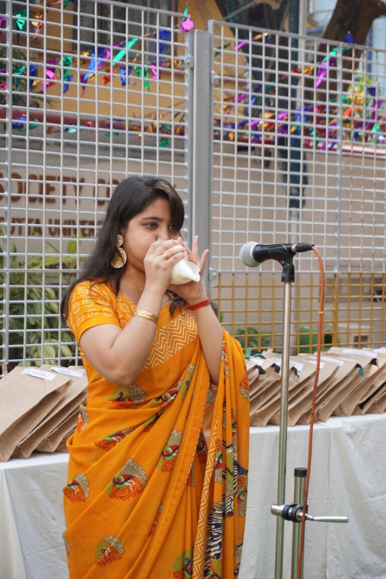 The celebration was a string of apt and pleasant events all lined up. To begin with, the college had invited orphan children for the start of the NSS activity- ‘Each One Teach One’. 10 college students pledged to take up this noble work for a year. After Pooja Archana the celebration began. Crescendo and Flames collectives put their shows which were amazing as always. The college also had organised competitions like: Rangoli Making, Conch Shell Blowing, Aarti Thali Decoration and Shlok Recitation, in which the students participated with enthusiasm. Next, faculty members of the college were felicitated for their PhDs and for their research papers published in national and international journals. There were 32 of them and all of them were felicitated by the college with a shawl and other goodies. Their work like journals, books and articles were displayed in front of the gathering. Finally, we had the prize distribution ceremony for the winners in different competitions.