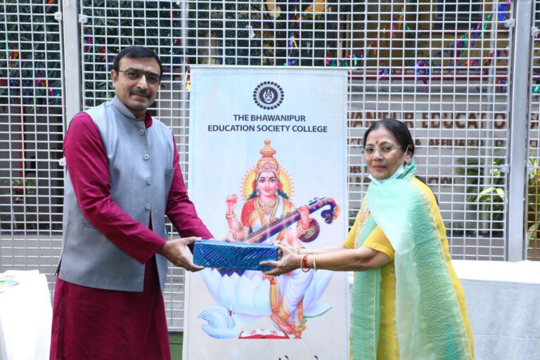 The Bhawanipur Education Society College celebrated Saraswati Puja on the 5th of February from 9AM onwards. Goddess Saraswati is the deity of knowledge, learning, arts, music and language. This day is very important in the life of all those who are associated with these verticals.