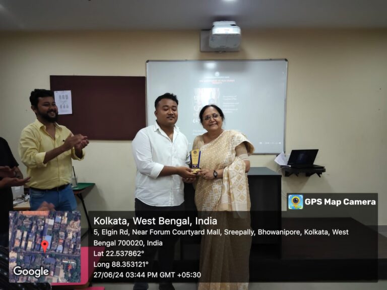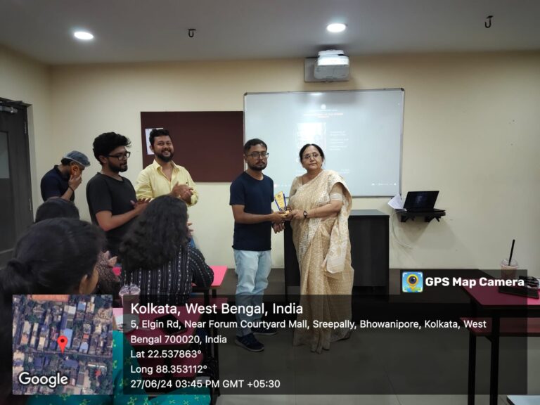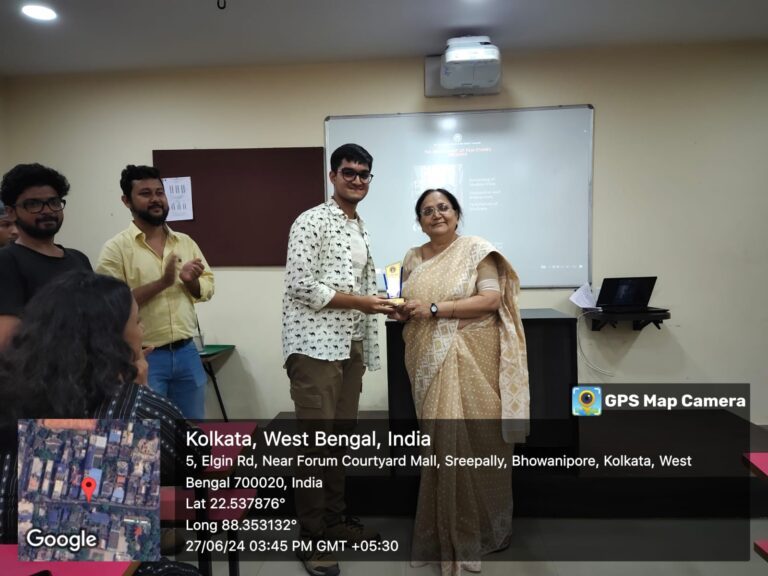 The afternoon came to a close with the felicitation. Each of the students was called out. A trophy in recognition of their efforts was handed by the chief guest of the event, the respected Vice Principal, Arts Prof. Debjani Ganguly. The event ended with formal and informal photo sessions and some cakes and mojitos.