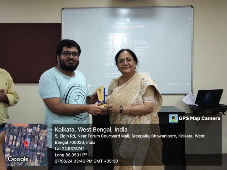 To recognize this remarkable achievement, this event was organized in Room 234 and was attended by students, teachers, and non-teaching staff of the arts section. The afternoon began with a round of introduction and applause. This was followed by the screening of the film. The thought provoking nature of the film resulted in a lively round of discussion and interaction. The students shared their experience of making the film, things they learned in the process and the challenges they had faced so far. The participants especially the teachers led by prof. Debjani Ganguly, were extremely encouraging on their part.