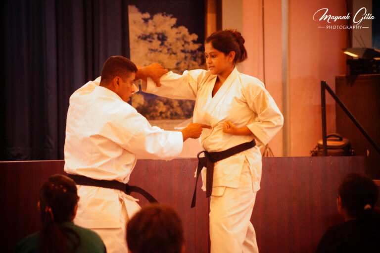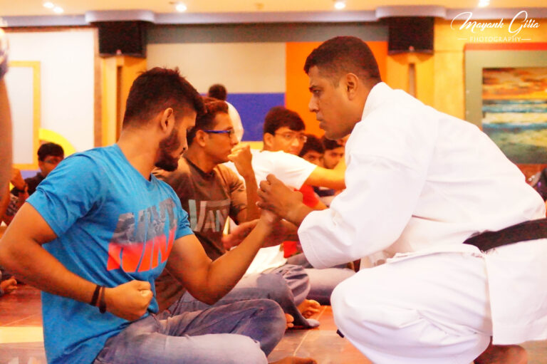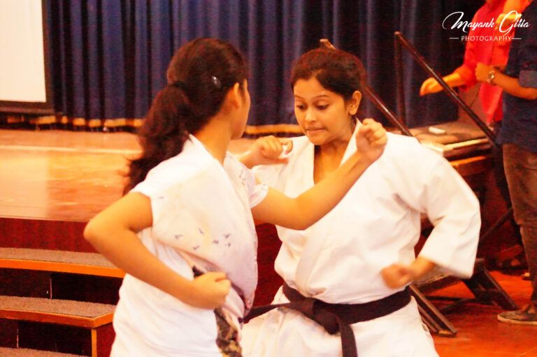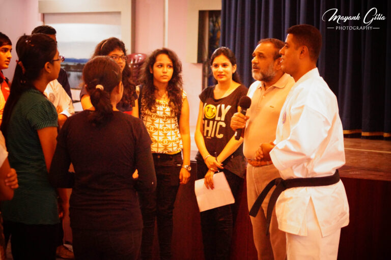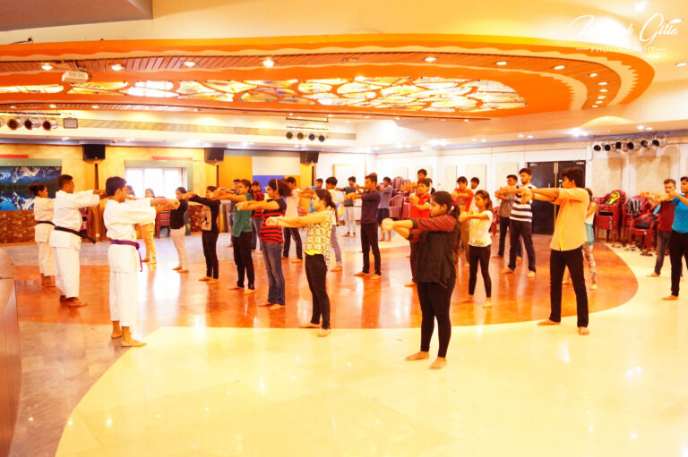 After a brief introduction about self defence, karate and its origin by Sensei Sudip Das he further explained the significance of Karate in our daily life. then he initiated the workshop by warm-ups and some practical examples and mixed martial arts. The students enthusiastically participated and showed a good spirit about it. On both the days students were equally energetic and dedicated towards the workshop. Students were so interested to know more about self-defence subject that they requested for more of these workshops.
