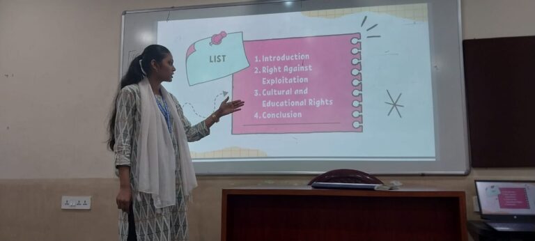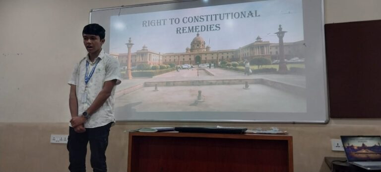 7. Brief description of the event: The Department of Political Science of The Bhawanipur Education Society College organised a student seminar on April 30th, 2024, in room number 548 of the college. Academic papers on a wide range of topics were presented by the first semester students . Group A presented a paper on Right to Constitutional remedies as enshrined in the Indian Constitution. Group B discussed the Right to freedom as enshrined in the Indian Constitution. Group C showcased presentations on Hindu Personal Laws in India. Group D presented a paper on Right against exploitation and Cultural and Educational Right as enshrined in the Indian Constitution. Group E discussed about Muslim Personal Laws in India. Group F showcased their presentation on Right to religion as enshrined in the Indian Constitution.After each presentation, the teachers shared their observations and valuable comments with the students so that they can improve upon their work and come up with better performances in future. The teachers of the Department encouraged the students to participate in more such academic activities and also announced the positions that were secured by the students. Group A stood First and Group F secured second position.