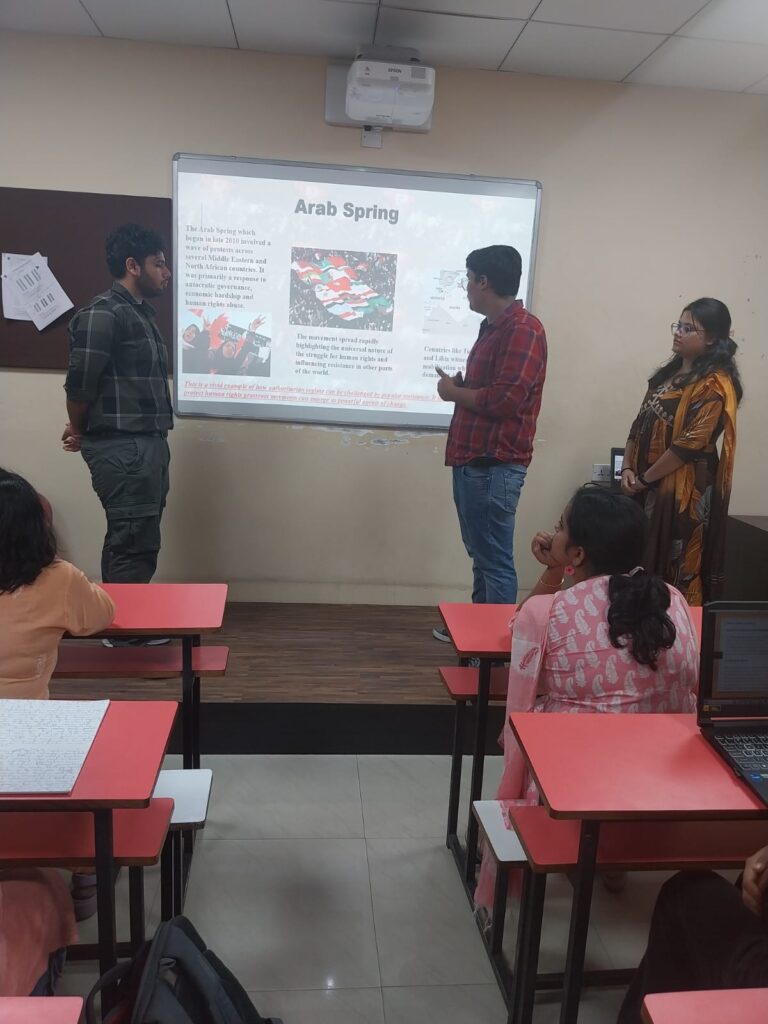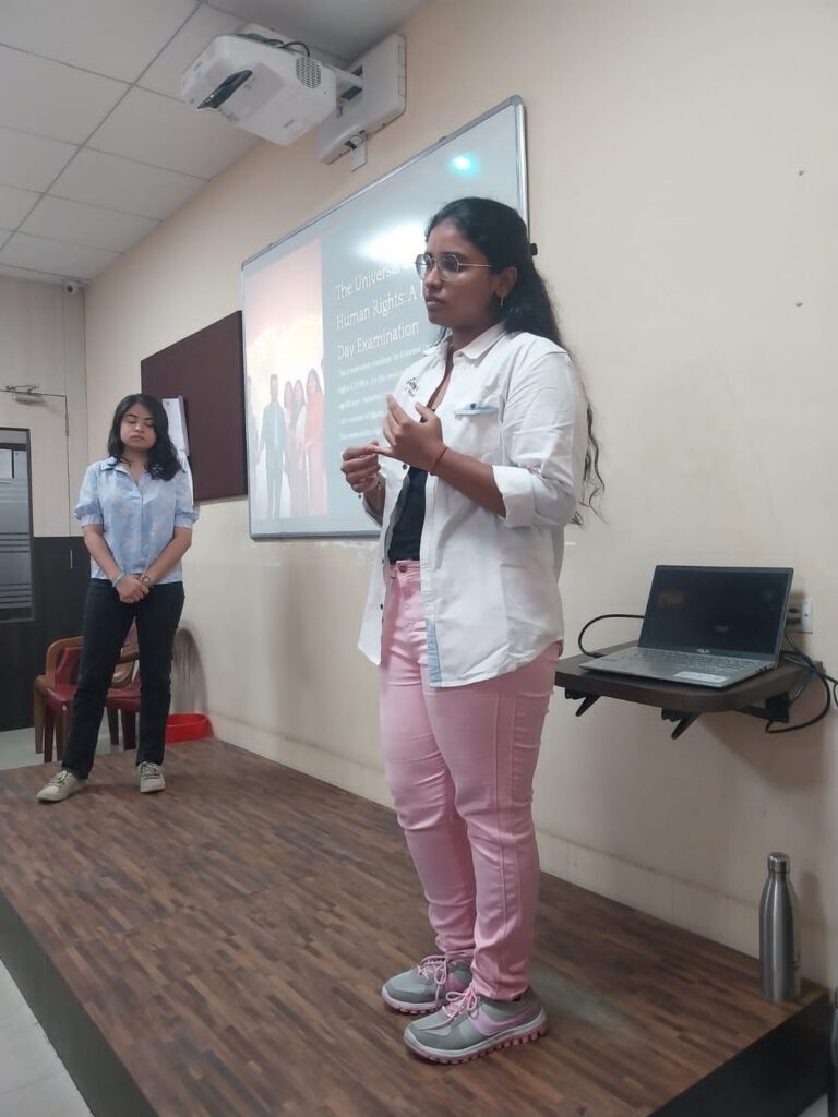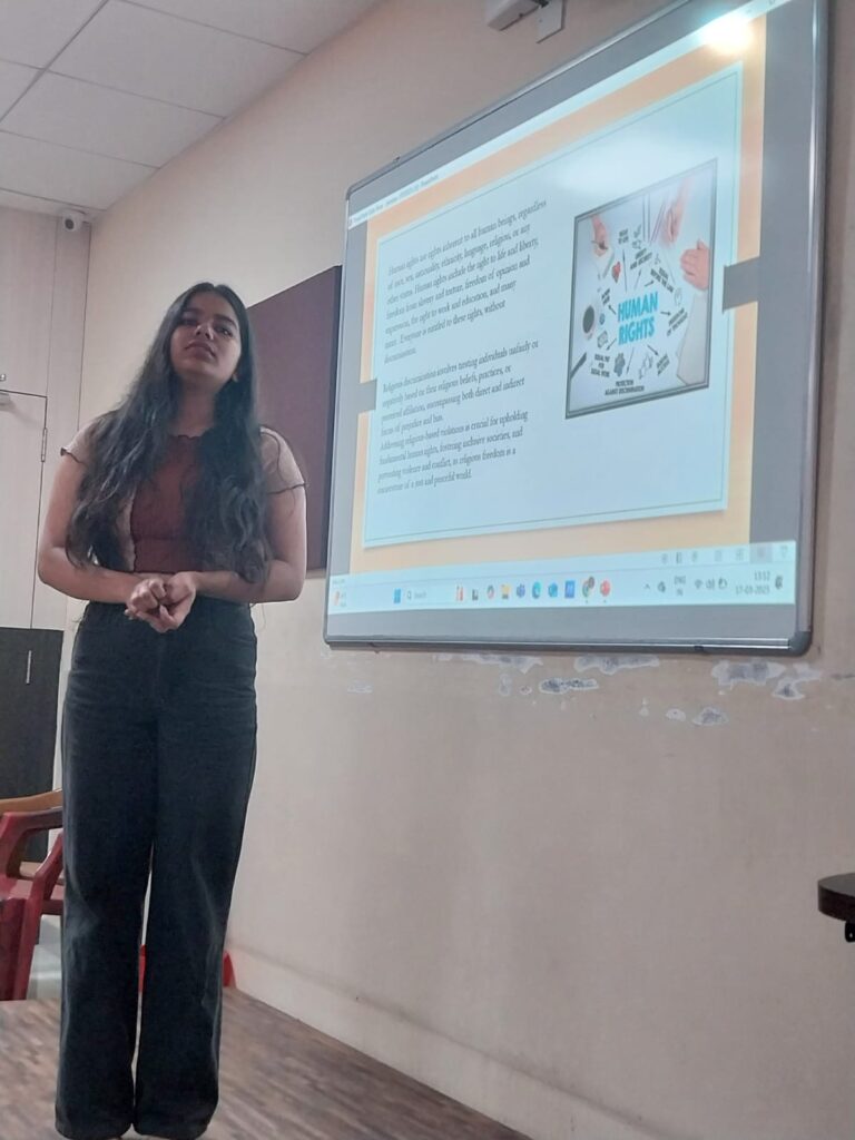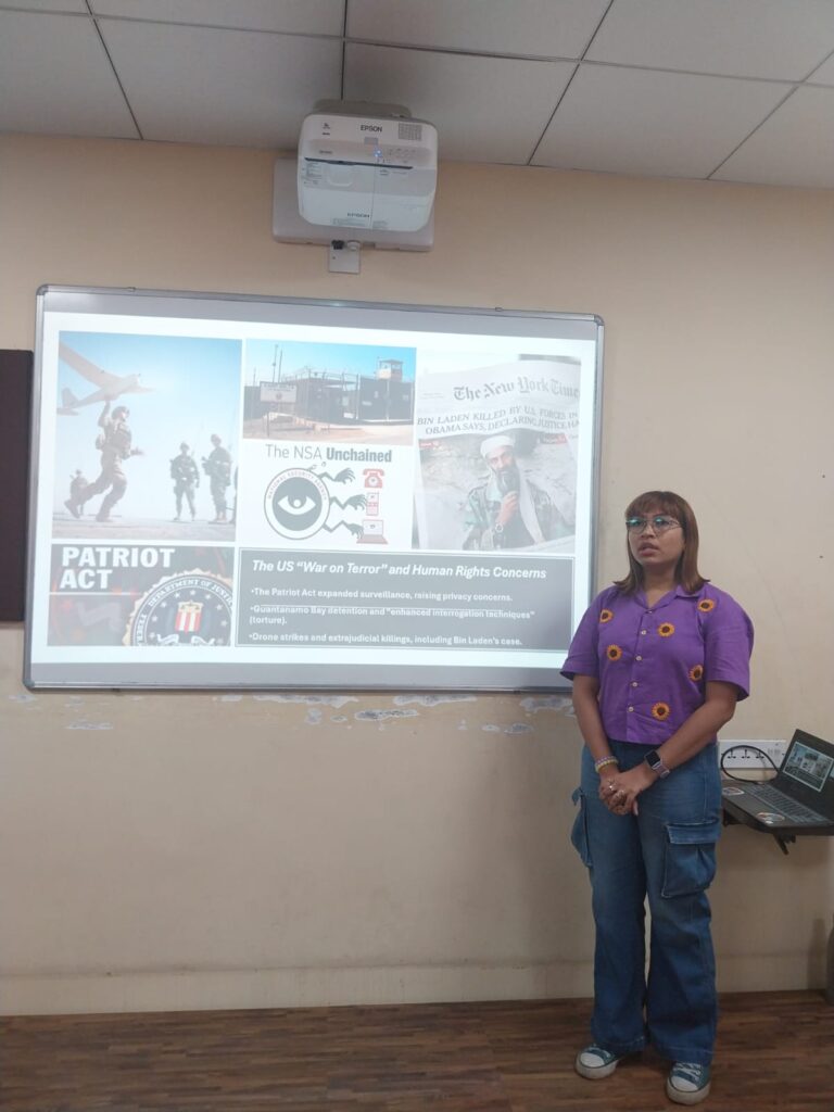 Brief description of the event: The Department of Political Science of The Bhawanipur Education Society College organised a Students’ Seminar on HUMAN RIGHTS in room number 534 of the college. Academic papers on diverse topics were presented by the sixth semester students. Prof. Amala Dhandhania and Prof. Debanjana Chakravarti of the Department of Political Science acted as judge for the event. After each presentation, the judges and the teachers of the department shared their observations and valuable suggestions. Sudeshna Jha’s presentation on Surveillance and Censorship: A Case Study of India and China was declared as the Best Paper.