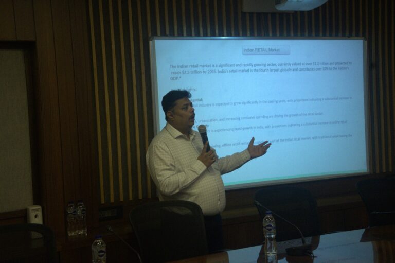 The seminar commenced with the Master of Ceremonies, Gazal Saraogi (Student of Semester 6) introducing the esteemed speaker, Mr. Dipesh Shah, a seasoned business leader having an experience for over 25 years in the Retail corporate sector. An alumnus of St. Xavier’s College Kolkata he is currently serving in the capacity of Area Controller (East) of Shoppers Stop.
