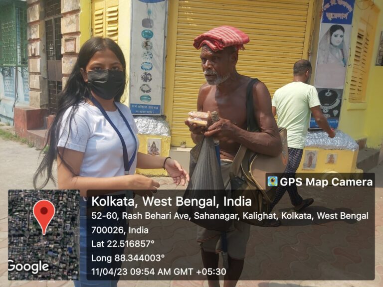 The distribution drive began at 8:30 am in Rowland Road ‘N.B. WELFARE Association with Prof. Gargi, Coordinator Harshit Modi, Rishabh Rathi, Badal Kumar Singh, and all NSS volunteers who distributed around 800 sandwiches. Then 2 different groups of volunteers went to Rashbehari Avenue crossing, Gopal Nagar, Rashbehari Gurudwara, Northern Park, Sambhunath Hospital, and distributed 1200 sandwiches.