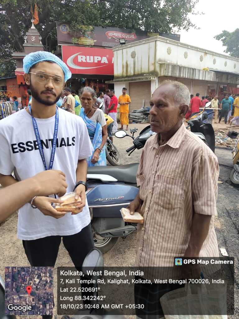 Brief description of the event: The NSS unit of The Bhawanipur Education Society College organized a Seva Sandwich Drive on 18th October 2023. The event began early, with students gathering at the Inner Space within the college premises at 6:15 am to prepare sandwiches. By 8:00 am, they were ready for distribution. The drive officially commenced at 8:30 am at the Rowland Road N.B. Welfare Association, where Prof. Gargi, Coordinator Harshit Modi, Kripa Sahal, and other NSS volunteers distributed approximately 750 sandwiches. Following this, two groups of volunteers moved to different locations, including Ballygunge, Bhawanipur, Kalighat, Rashbehari Avenue crossing, and Sambhunath Hospital, distributing an additional 1,350 sandwiches. In total, 55 volunteers prepared around 2,100 sandwiches, which were shared with over 2,000 children, women, and elderly individuals. The initiative succeeded in bringing joy and smiles to those it aimed to help, leaving a lasting impact. The volunteers cherished the day’s experience, fulfilling the drive’s mission to spread kindness and care.