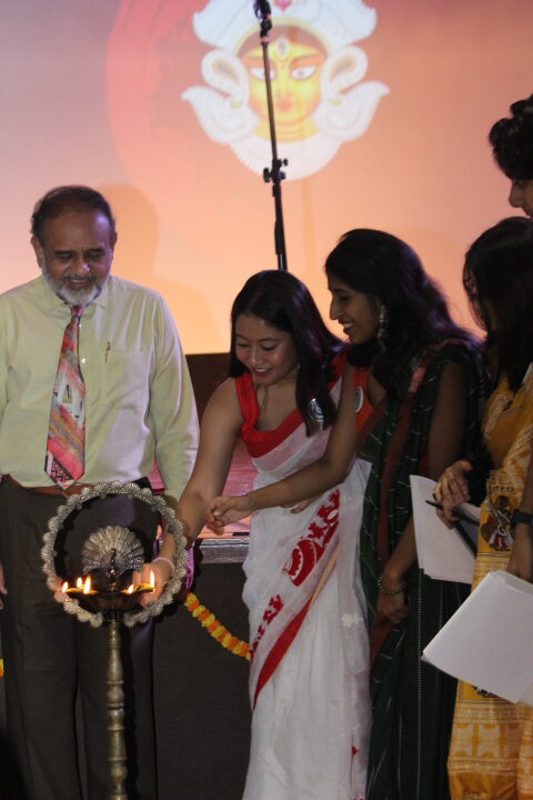To celebrate the beginning of “Debipokhho”, i.e., the arrival of the Goddess, and welcome the victory of good over evil, The Bhawanipur Education Society College celebrated the auspicious occasion of Sharodiya creating history in its books. On 3rd October, 2024 for the very first time, BESC witnessed an event called Sharodiya which experienced the best energies in terms of dance, music, poetry, and audio drama taking place in the Jubilee Hall of the college. The hall witnessed a surplus of audience excited enough to be a part of the very first edition of Sharodiya. The event commenced at 11:30 A.M. onwards with Prof. Dilip Shah, Rector and Dean of Students’ Affairs lighting the lamp of wisdom and strength and inaugurating the event. What can be a better start than having the Durga Stotram as the first performance, as it filled the room with energy, making it devoid of negativity. As the event proceeded, the participants kept setting the stage on fire with their powerful performances inspired by the spirit of Goddess Durga. Music proved to be one of the most impactful ways to display energy while dance showcased strength. Poetry and Audio Play welcomed the beginning of Sharadotsav with rhythmic words and their beauty. A special performance by Crescendo’s representative, Sreyan Ray, and Expressions’ representative, Suchetan Bhadra, captivated the audience, adding an unforgettable highlight to the event. Their duo performance with the guitar kept the audience spellbound. One of the performances of ‘Shruti Natok’ or Audio play, presented a playful and funny conversation between Durga and Shiv, which proved to be a commendable performance of the day. On the other hand, poetry performed by one of the participants highlighted the irony between our worship of the Goddess Durga and at the same time, our society’s ill-treatment of its women. Also, one of the group dances rightfully showcased the power and divinity of Goddess Durga. The audience seemed to be keen enough to witness the beauty of Sharodiya which the college could host for the first time.