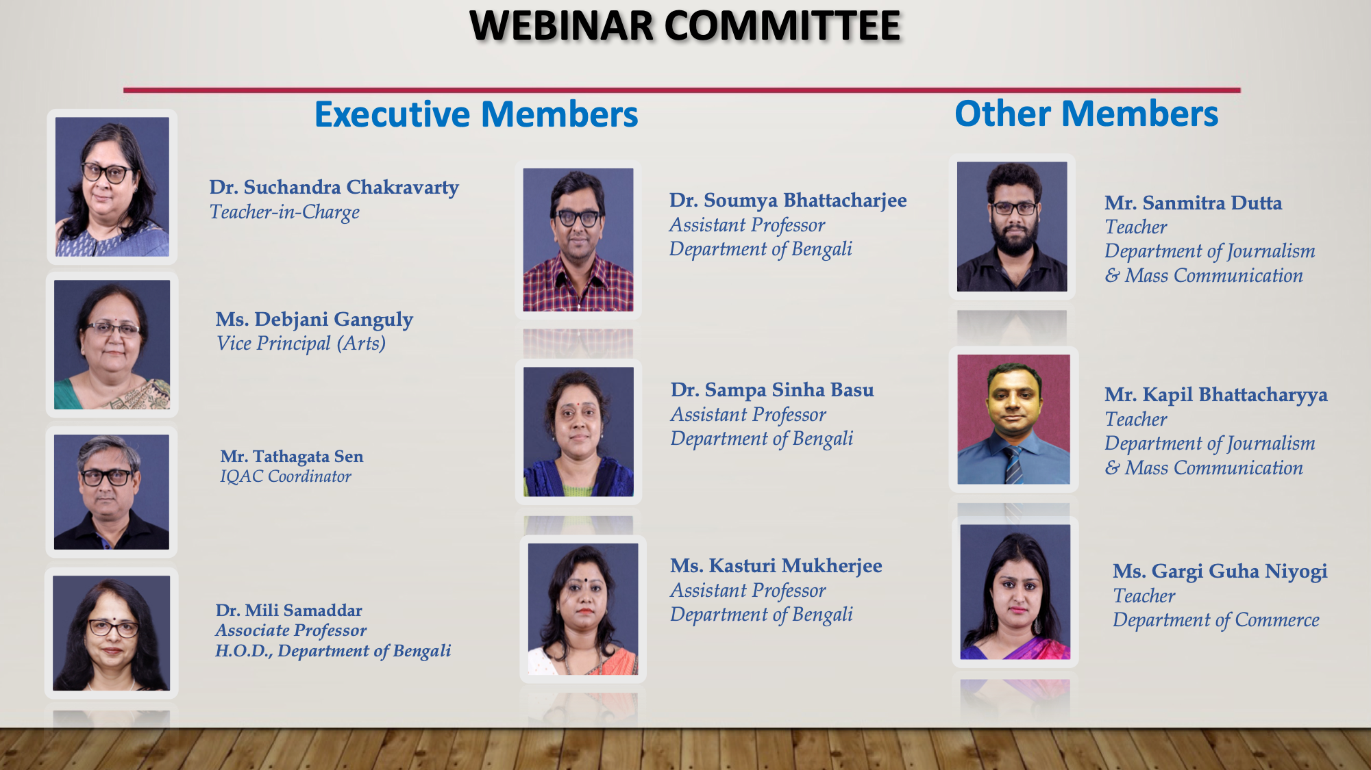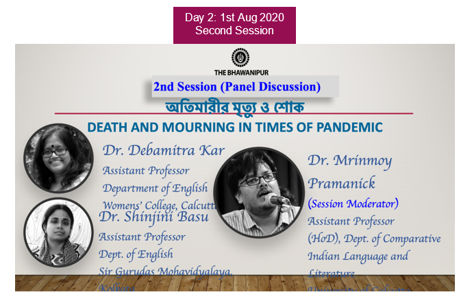 2nd Session : Panel Discussion Dr. Debamitra Kar Assistant Prof, Dept. of English Womens’ College, Calcutta Dr. Shinjini Basu Assistant Prof, Dept. of English Sir Gurudas Mohavidyalaya, Kolkata Dr. Mrinmoy Pramanick (moderator) Assistant Prof (HoD), Dept. of Comparative Indian Language and Literature University of Calcutta, Kolkata