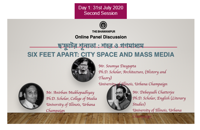 2nd Session : Panel Discussion Mr. Anirban Mukhopadhyay Ph.D Scholar, College of Media University of Illinois, Urbana Champaign Mr. Soumya Dasgupta Ph.D Scholar, Architecture (History and Theory) University of Illinois, Urbana Champaign Mr. Debayudh Chatterjee Ph.D Scholar, English (Literary Studies) University of Illinois, Urbana Champaign
