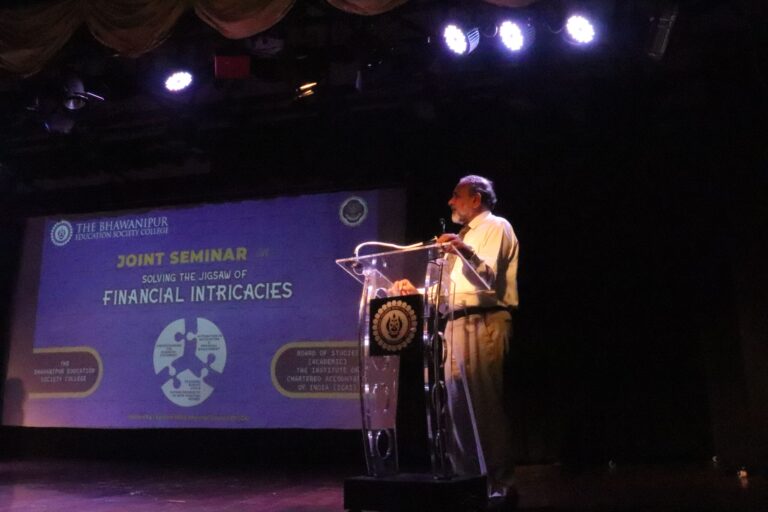 On the 6th of May 2025, the Bhawanipur Education Society College organised a joint seminar with the Board of Studies (Academics) of the Institute of Chartered Accountants of India (ICAI), India’s largest professional accounting body under the administrative control of the Government of India. The event was the third in a line of joint seminars, the previous two being conducted in January 2024, titled Nuggets of Professional Success”, and the second conducted in April 2025, titled Being New Age Technology. This year’s seminar, Solving the Jigsaw of Financial Intricacies, was hosted by the Eastern India Regional Council  (EIRC) of the Institute of Chartered Accountants of India. It was a day-long event that began at 11:00 A.M. in the Jubilee Hall within the college premises. The seminar began with the participation of more than 150 dedicated student participants, more than 15 college faculty members and a group of students from the ICAI. INAUGURAL CEREMONY: The seminar was inaugurated with the auspicious lighting of the ceremonial lamp, where Prof. Dilip Shah, Rector and Dean of Student Affairs of The BESC; Prof. Minakshi Chaturvedi, Vice Principal of the Department of Commerce (Morning) of BESC; Prof. CA Vivek Patwari, Coordinator of the Department of Commerce (Morning) of BESC; Teacher In-Charge, Dr. Subhabrata Gangopadhyay; CA Mayur Agrawal, Vice Chairman of EIRC of ICAI and Chairman EICASA; CA Vishnu K. Tulsyan, Chairman of EIRC of ICAI and CA Rohit Prasad. The first address was by CA Vishnu K. Tulsyan, who addressed the audience about the EIRC of The ICAI, discussing its operations, goals, and the theme of the upcoming 50th regional conference: “EYE – Ethics, Youth, Empower.” He emphasised a collective commitment to knowledge, youthful energy, and ethics. Additionally, he encouraged the audience to dedicate time to nature and work towards a sustainable India. His speech ended with the Motto song of ICAI being played in the hall. Next, CA Mayur Agrawal shared a few enlightening words with fellow students in the audience. His words, Consistency is the key. The one who is consistent for the next 365 days will achieve heights more than the one who is intelligent but not consistent, resonated with the audience. Prof. Dilip Shah then took to the stage and decoded the theme of the seminar, stating that the seminar aims at filling the gaps on finances. Prof. Shah announced that BESC would also start taking CA Foundation and CA Intermediate classes for CA aspirants within the next few days. Following Prof. Shah, Prof. Minakshi Chaturvedi took the stage and thanked the members and representatives of ICAI, the panellist speakers, the faculty members, and the fellow students for marking their attendance at the seminar. With this, Dr. Subhabrata Gangopadhyay felicitated CA Vishnu K. Tulsyan and CA Mayur Agrawal with an Uttariya and a momento. The members and representatives of ICAI felicitated Prof. Dilip Shah, Prof. Minakshi Chaturvedi, Prof. CA Vivek Patwari, and Dr. Subhabrata Gangopadhyay. Following this, CA Prof. Vivek Patwari enlightened the audience about the event and described the seminar exclusively as an academic seminar. In his words, The seminar will give us a lot of deeper insights.