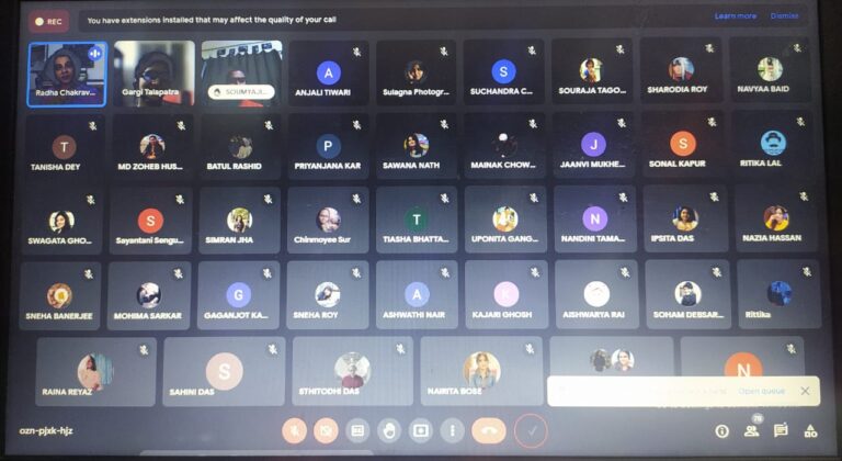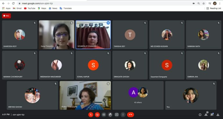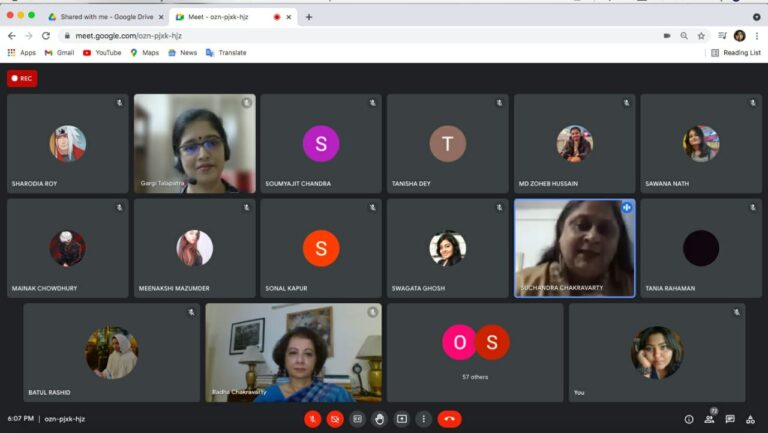 Professor Chakravarty’s special lecture entitled “Cosmic Connections: The Dynamic Vision of Rabindranath Tagore” for the students at The Bhawanipur Education Society College began with a reference to the present scenario of isolation and distancing in the wake of the Pandemic and observed how these terms have, nonetheless, been also lines along which the society has continued to be divided at various levels, socially as well as politically. She observed that though Tagore did not produce a systematic philosophical theory, yet his critique of orthodox religious practices, the hierarchies of caste and class, and his thoughts about women as represented in his works place him ahead of his times and make him stand out as a visionary. Professor Chakravarty emphasized on the fact that Tagore never sees the world in monochrome and elaborated on his vision which transcended binaristic classifications with a reference to Tagore’s letter to Albert Einstein. She explored Tagore’s contribution to the education system and his understanding of real education with his vision of Santiniketan and elaborated on his idea of world literature by mentioning his own translations of Kabir and Guru Nanak’s bhajans besides twenty three other poets writing in different Indian languages. The lecture concluded with an elaborate interactive session. It was attended by the students from the Department of English and was much appreciated by all of them. They participated actively in the interactive session which continued for an hour after the lecture.