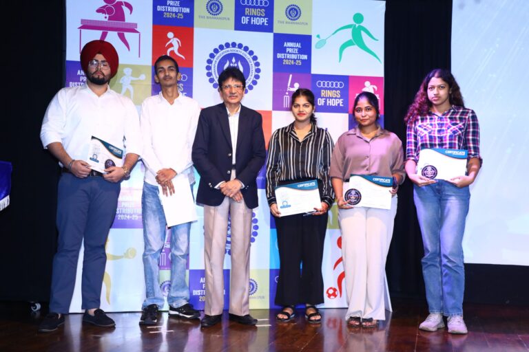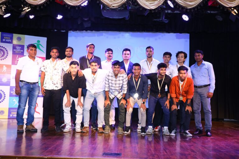 Date: 3rd August 2025 Venue: Jubilee Hall, 6th Floor, BESC Participants: 255 (Boys & Girls) Sports Events: 29 The Sports and Athletics felicitation meet ‘Rings of Hope’ celebrated the sporting achievements of our students for the academic year 2024–25, honouring their dedication, discipline, and talent across 29 events. The programme began with the ceremonial lamp lighting by dignitaries, symbolising unity, energy, and enlightenment.