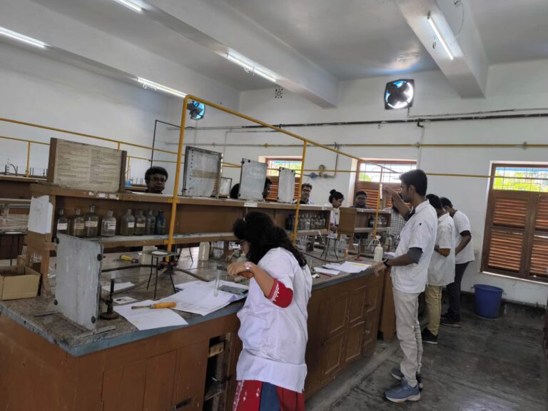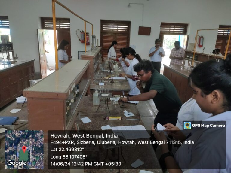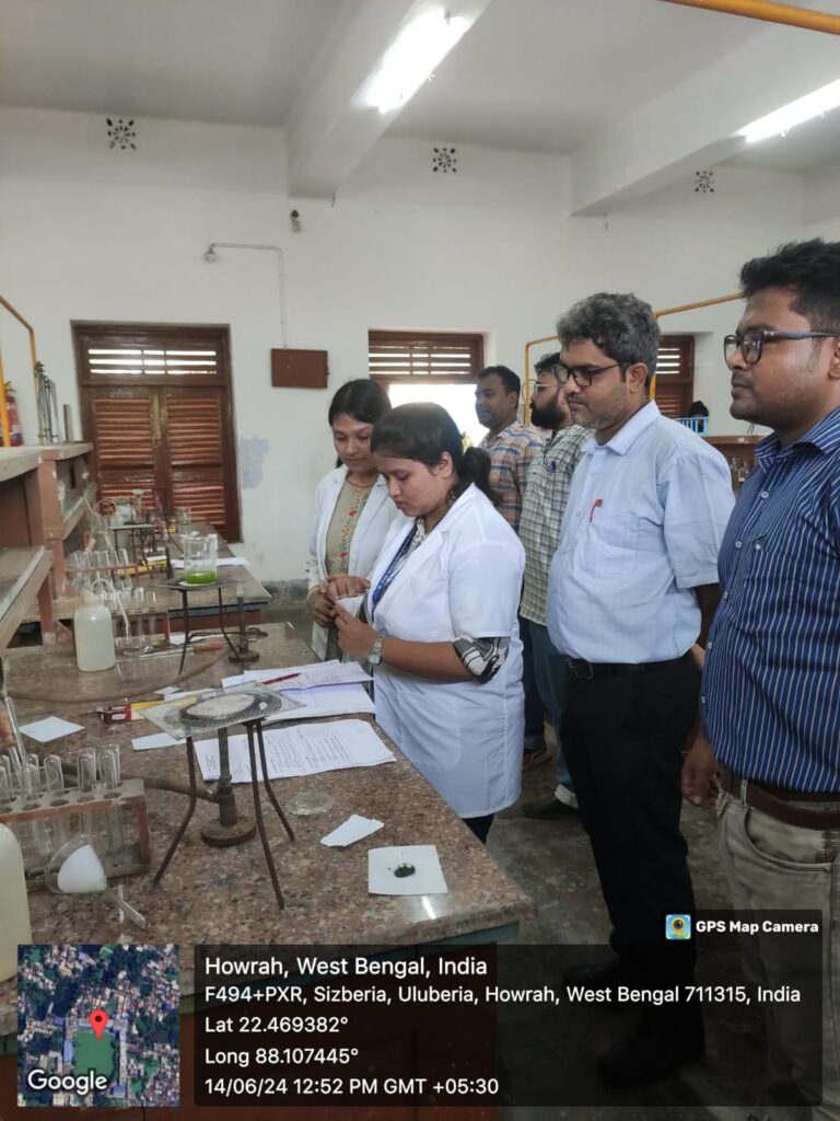 8. Brief description of the event: Semester-6 students of the Department of Chemistry of The Bhawanipur Education Society College had visited the Department of Chemistry of Uluberia College as a part of Student Exchange Programme between the two colleges. Dr. Shyamal Kumar Sarkar had conducted the practical class: Qualitative analysis of inorganic salts. Students had performed the practical experiment under his guidance.