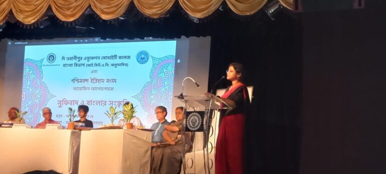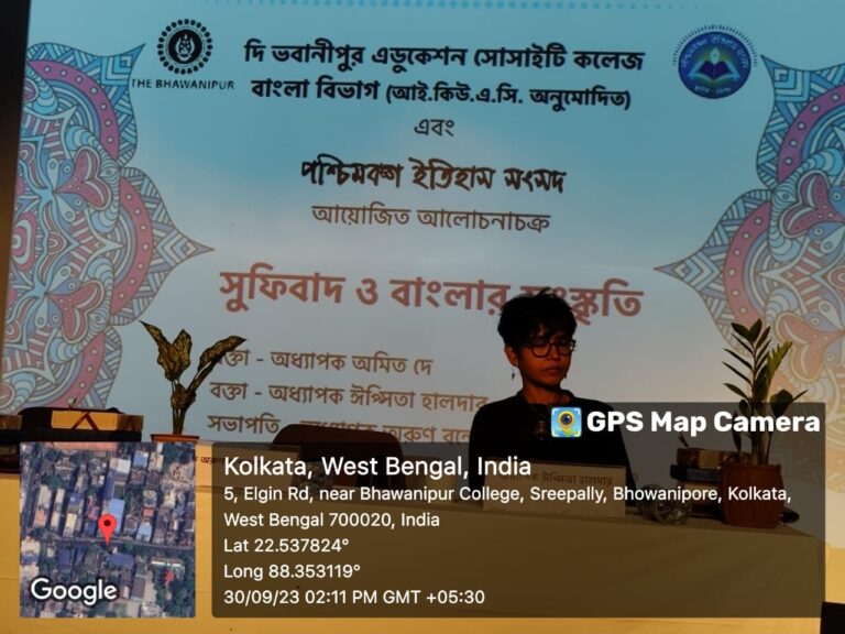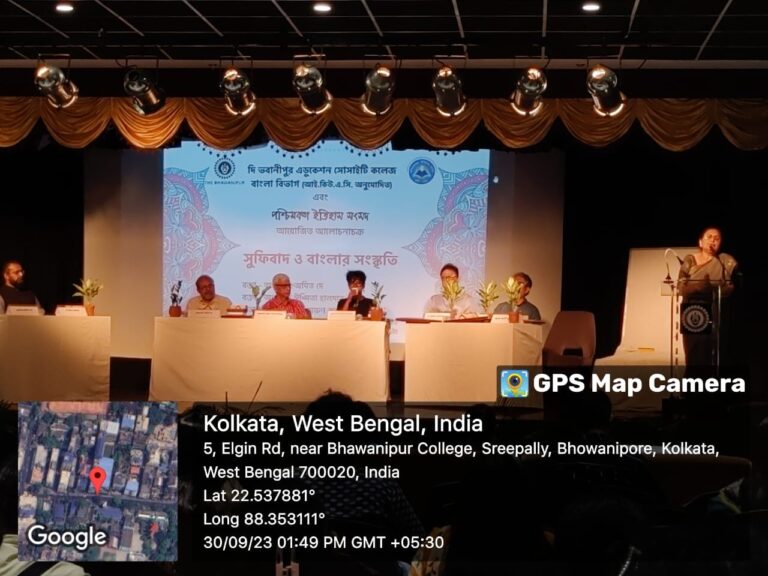 The Department of Bengali collaborated with Pashchimbanga Itihas Samsad to host a seminar/panel discussion on Sufism and Bengali culture, duly ratified by the IQAC of our college in Jubilee Hall on Saturday, 30 September, 2023. The panel included very distinguished speakers, Prof. A. Dey, Ashutosh Mukherjee Professor, of the Department of History, University of Calcutta and Dr. Ipshita Halder, Associate Professor of Comparative Literature, Jadavpur University, Kolkata. The session was chaired by the eminent historian, Shri A. Bandyopadhyay.