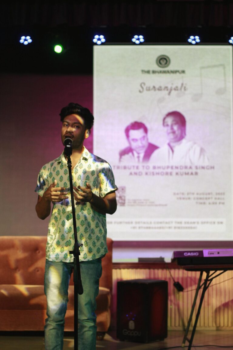 The event was held on 5th August, 2022, Friday at the Concept Hall, from 4.30 pm onwards. It was keenly organised by Devang Nagar. The comperes for the tribute were Tushita Chhugani and Srishti Sanganeria. The show was dignified by the presence of Prof. Dilip Shah, The Dean of Student Affairs, Sourav Goswami, music mentor in our college and Nitin Chaturvedi, professor in the Commerce Depeartment, BESC.