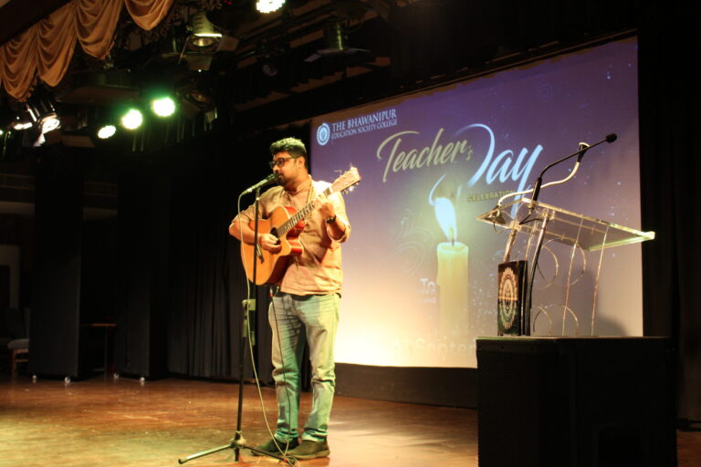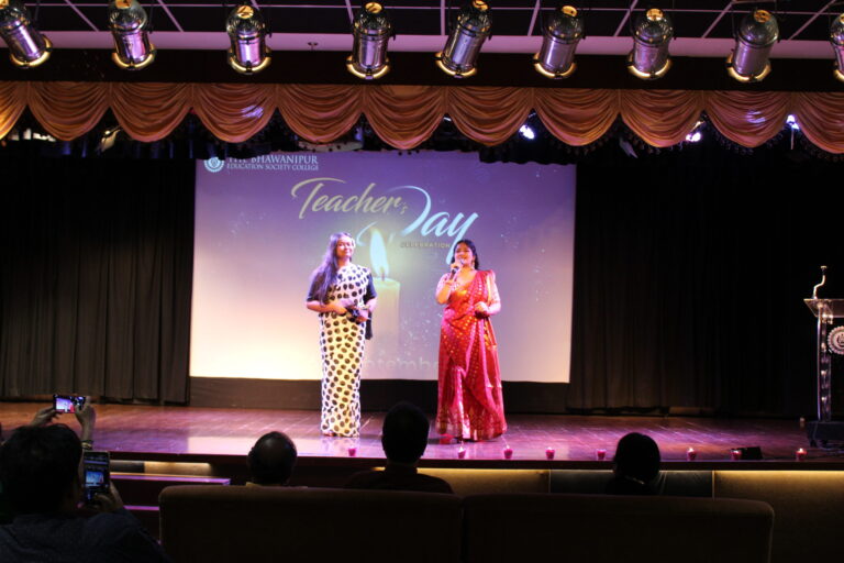 Great teachers nurture imaginations and build pioneering youths, ensuring that the future is in the right hands, and the professors of The Bhawanipur Education Society College are no less, rightfully proving that they are at the heart of the educational system. September 5, marked as the birthday of the remarkable teacher Sarvepalli Radhakrishnan, is recognised as “Teachers’ Day” all over the globe to celebrate teachers. From Socrates to Aristotle to Dronacharya and A.P.J. Abdul Kalam, we celebrate them and the paths they showed, honouring their unwavering spirit and the art of imparting knowledge. Since 5th September 2025 was a holiday on account of Eid Milad-un-Nabi, the students of BESC chose 6th September 2025 as the ideal opportunity to celebrate Teachers’ Day, expressing gratitude and heartfelt thanks to the professors who shape the students’ future, leaving an indelible mark on their lives. The Bhawanipur Education Society College witnessed a symphony of joy and trailblazing performances on the occasion of the Teachers’ Day celebrations in the college’s Jubilee Hall. The celebrations were divided into two time slots, with the first beginning at 9:30 A.M. and continuing until 12:00 P.M., and the second from 3:00 P.M. to 4:30 P.M. The 6th floor of the college was decorated with creativity and elegance, welcoming the professors. As they entered the hall, they were greeted with a small box of chocolates, beautifully wrapped in coloured paper, as a token of gratitude. The professors took their seats with excited faces, looking forward to the showcases of the day.