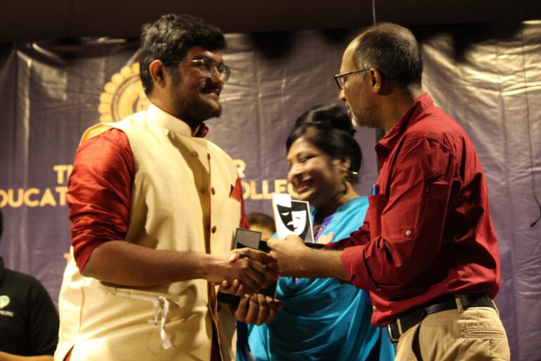 The first THEATRE FESTIVAL of BESC portrayed various flares of intriguing pastiche of exemplary theatre art. In this two day event organised on 27th and 28th of February ‘The Bhawanipur Education Society College’ celebrated the power of theatre where myriad imaginative and creative souls hailing from various colleges of Kolkata were given a golden opportunity to socially showcase their unique acting skills . The theatre festival started off at 10:00 a.m. at the Concept Hall with a heart-warming welcome address presented by Dean of student affairs – BESC, Prof.Dilip Shah.This was followed up by the felicitation of The Chief Guest- Ms. Usha Ganguly. The Student Coordinator for this event was Argha Banerjee –from the College Enact Collective and the winner for Boardroom drama, short film making, nukkad natak and mono acting as well as the first runner up of Stage Play.