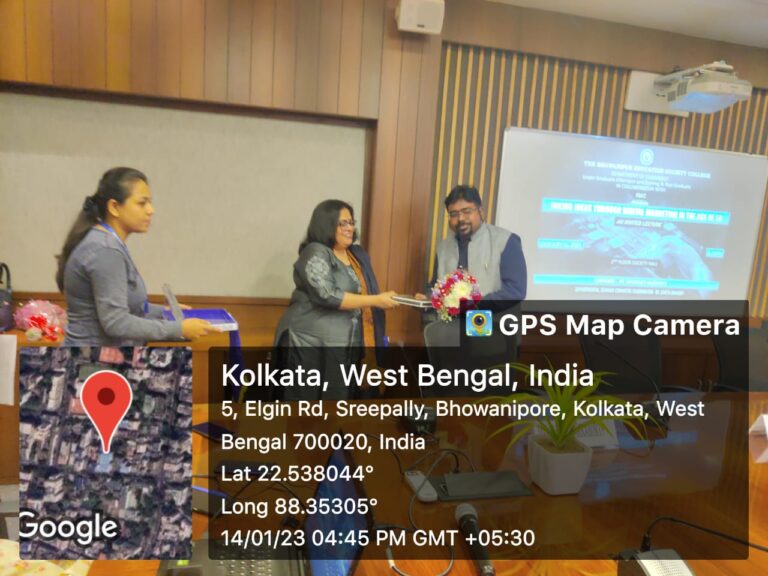 An invited lecture on “Inking Ideas Through Digital Marketing In The Age Of 5G” was organized by the Department of Commerce, UG(Afternoon and Evening Section) on the 14th January, 2023 for the students of the Afternoon and Evening Section. The keynote speakers for the invited lecture were Prof. Rohit Ganguly(Assistant Professor, Department of Media Science, Swami Vivekananda Institute of Modern Science) and Mr. Sudipan Chakraborty (PR, Celebrity Manager- French Communication). Approximately 75 participant attended the talk.
