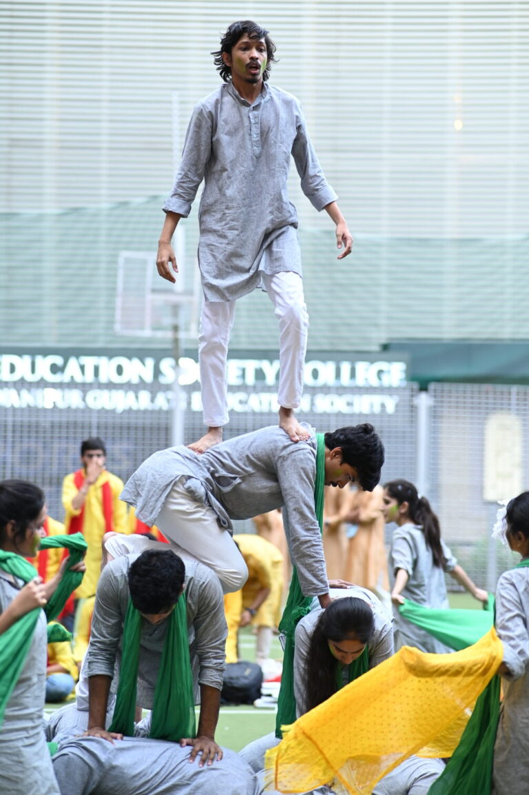 On day 1, the festival saw its inauguration ceremony at 10 a.m. at Jubilee Hall. The audience present consisted of students from the college and participating teams of other colleges with their representatives witnessing the unfolding of the festival through a video trailer depicting its essence. The theme of the festival was “Speculo: I within Eye.” which was disclosed by the Dean of Student Affairs, Prof Dilip Shah. The ceremony also saw the felicitation of Ms. Moubani Sarkar, BA English (Hons) Semester IV student. She won Gold at the State Rowing Championship by members of the management Sri. Jeetu Shah and Sri. Umesh Thakkar. A video montage of her achievements was also displayed in the background while she was felicitated. Further, Prof. Dilip Shah shared his thoughts on the occasion through Shayari, poems, and quotes from famous playwrights and poets alike.