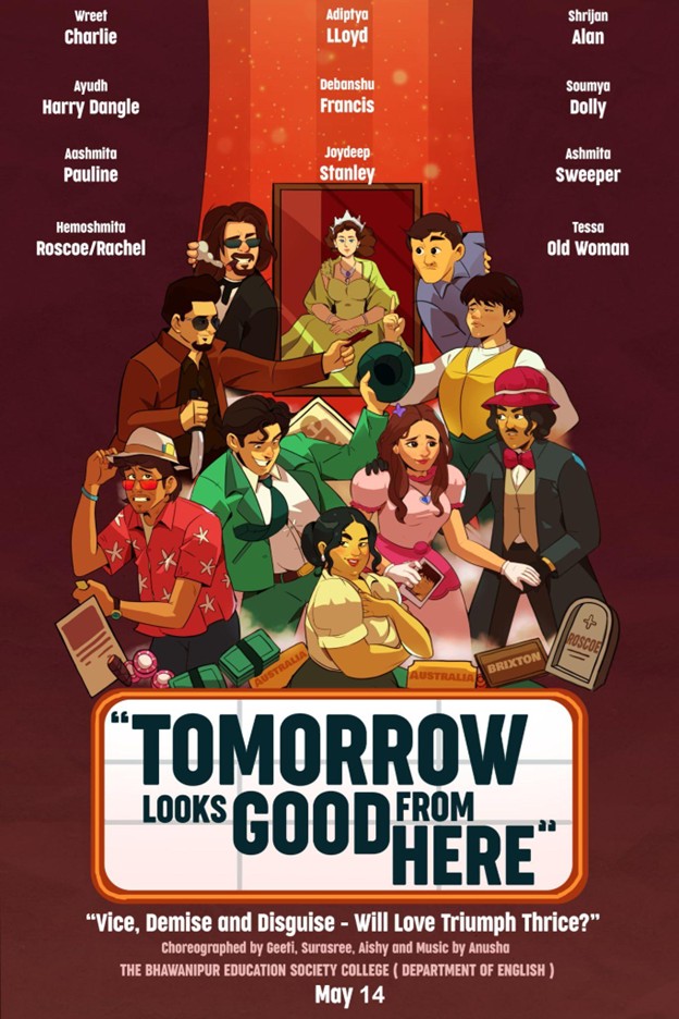 TOMORROW LOOKS GOOD FROM HERE, a musical comedy, adapted from the play: One Man, Two Guvnors by Richard Bean, was organised by the students of the English Department on 14th of May from 2:45 to 4:30 PM at the Jubilee Hall. The play was staged on the collaborative efforts of the students of the English Department under Swagata Mukherjee, who was the organiser and director of this creative venture. The cast of the play comprised of 11 students who portrayed different characters and they are as follows: Soumya Sarthi, Debanshu Ghosh, Joydeep Mukherjee, Hemoshmita Das, Ashmita Das, Aasmita Das, Shrijan Das Gupta, Wreet Gupta, Theo Wreek Gupta, Tessa Bakshi and Ayudh Sarkar.