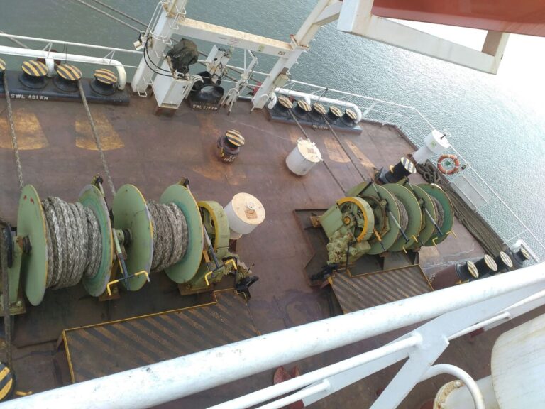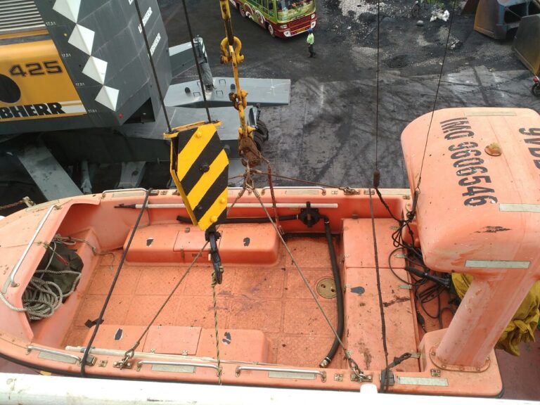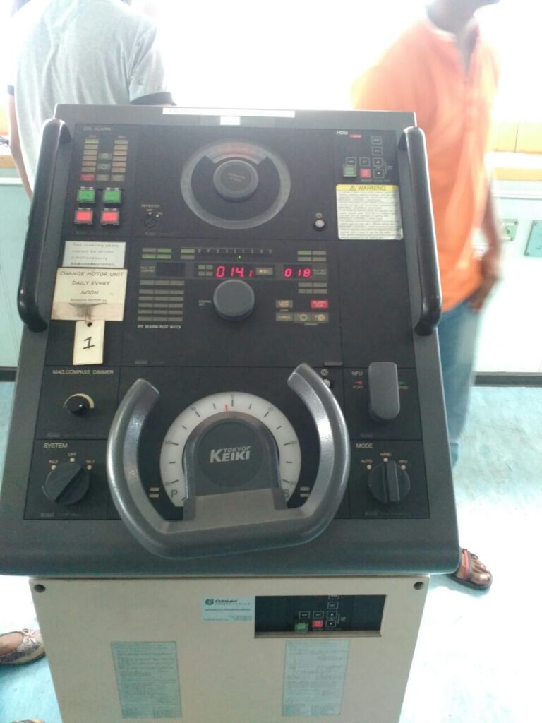 Students were given the permit to see the “UNI CHALLENGE” vessel which arrived a few days back from Singapore. Students were taken one by one on board and were alighted at the alighting point of the ship. The crew showed them the life boats and rescue boats and explained how they were used. Students were further taken to a room in which various technical machines and instruments were kept. Students saw instruments such as the Chronometer, Electromagnetic compass, Binoculars, Telegraph machine etc. Students also saw the survey maps used by them which reminded many of them about their 10th  standard geography. After spending 10 minutes in that room students were taken to the deck where there were three containers with a capacity of 40 tons each which contains minerals to be imported and exported.