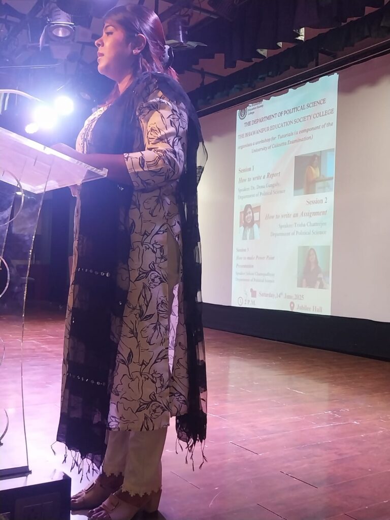 Brief description of the event: The Tutorial Workshop for Semester 4 and 2 students was conducted to enhance their skills in Report Writing, Assignment Writing, and PPT Presentation. Dr. Dona Ganguly explained how to structure a report, including introduction, methodology, results, and conclusion. The students understood the importance of clarity, coherence, and organization in report writing. Students were guided by Ms. Trisha Chatterjee and Mr. Abhilash Roy on how to approach assignment writing, including understanding the question, researching, and organizing their thoughts. They learned how to write clear and concise answers. Ms. SohiniChattopadhyay explained how to create effective PPT presentations, including designing slides, using visuals, and delivering presentations confidently.
