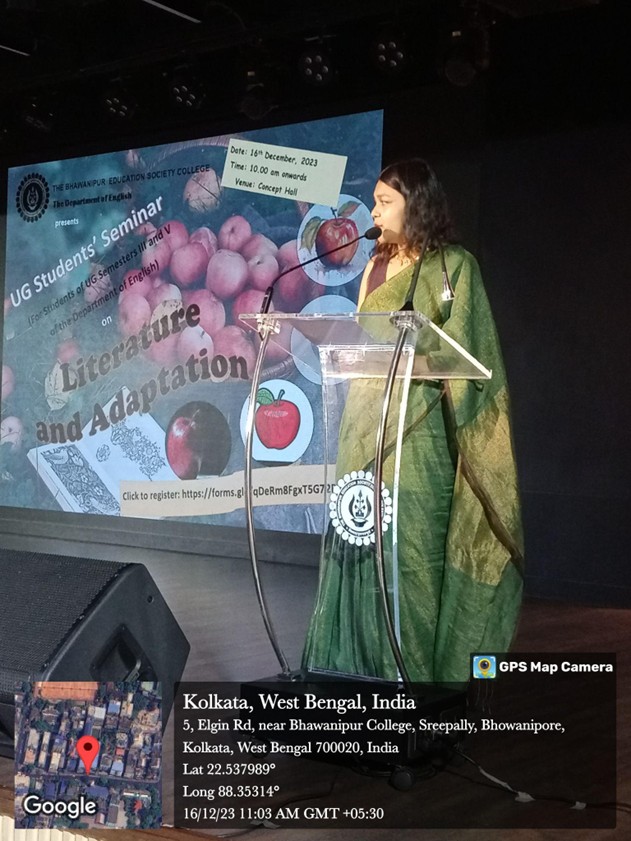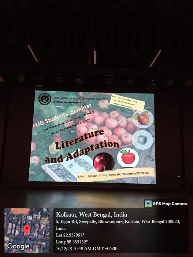 On 16th December, 2023, the fourth chapter of the Students’ Seminar was organised by The Department of English, The Bhawanipur Education Society College, in the Concept Hall from 11AM to 4 PM. The theme for the seminar, “Literature and Adaptation”, was selected for the students of UG semesters III and V and a Call for Papers was circulated.