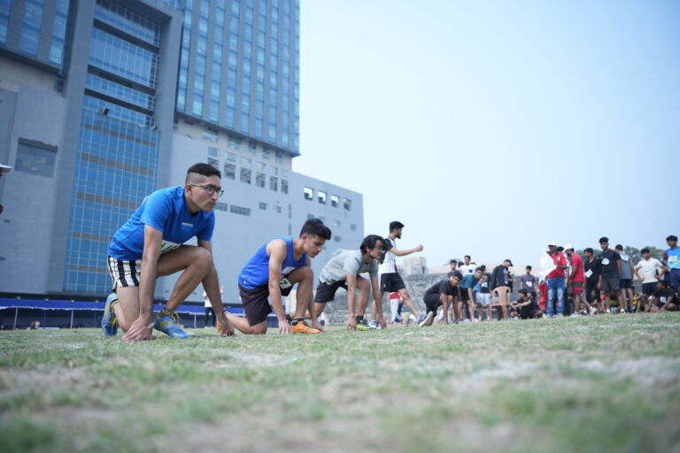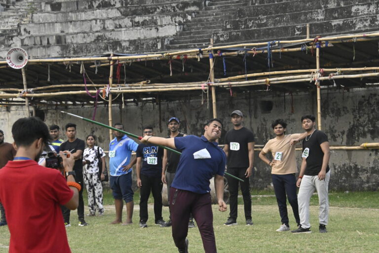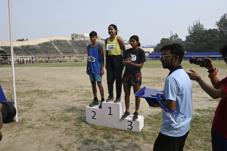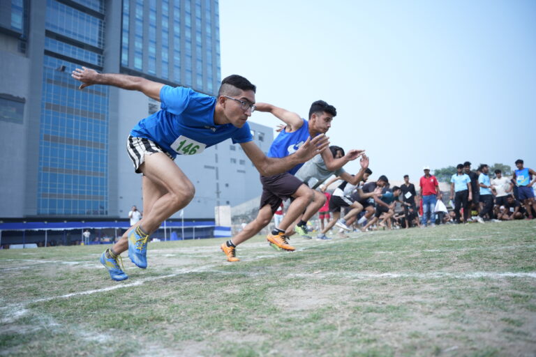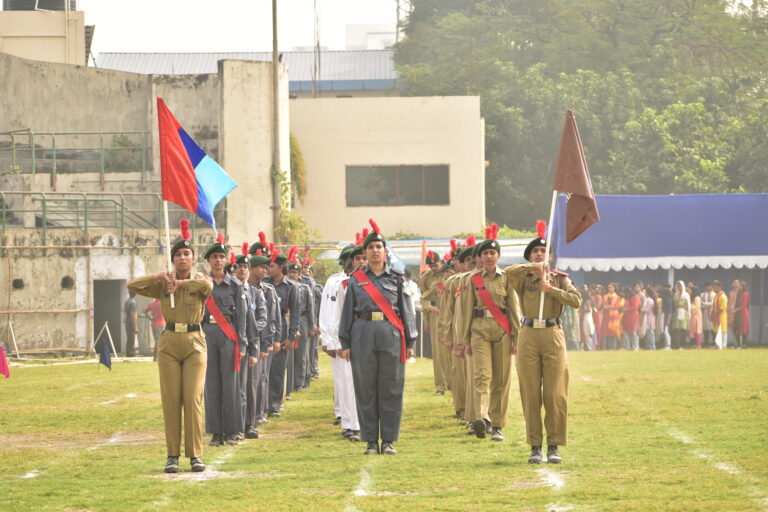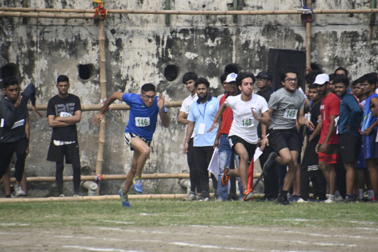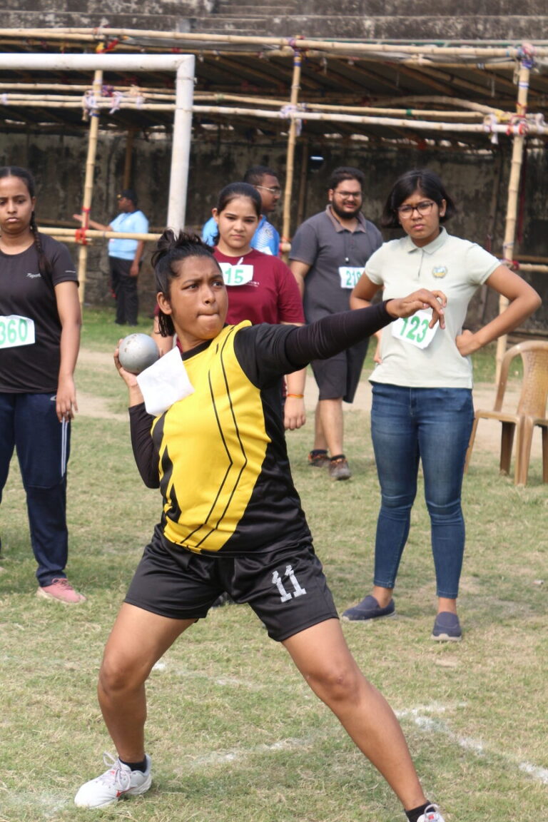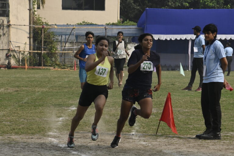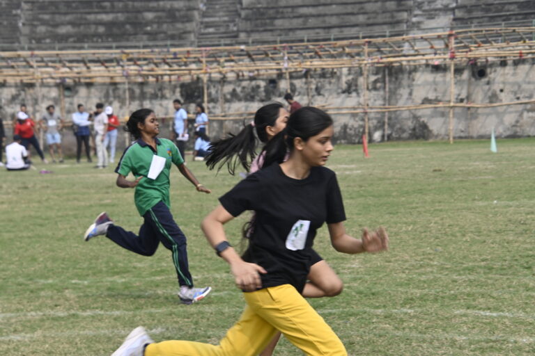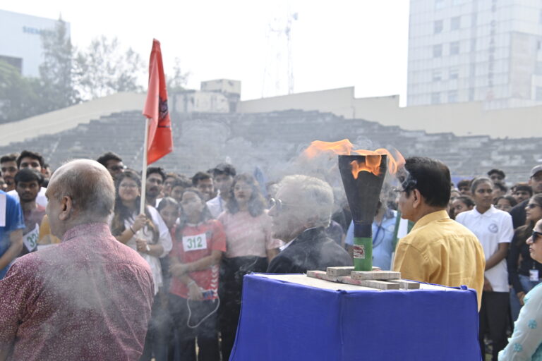 The Bhawanipur Education Society College hosted an electrifying Intra College Athletic Meet at the Gitanjali Stadium, Kolkata starting at 9.30 am and spanning till 5:00 pm. The day commenced with a spirited walk around Gitanjali Stadium led by the NCC unit of the college. The event was initiated by the lighting of the Mashaal by members of the Management of the college, including President, Shri Rajnikant Dani, Dr. Suman Mukerjee, Director General of The BESC,  Rector & Dean of Student Affairs, Prof. Dilip Shah, Mr. Jitendra Shah, Mr. Umesh Thakkar, Prof. Minakshi Chaturvedi, Coordinator B.com (Morning), Sports In-charge, Mr. Rupesh Gandhi and Mr. Bhavin Parmar. Followed by the inaugural, March past by the NCC unit was witnessed, followed by students of different collectives of the college, bearing the flags along with their members walking behind. The audience witnessed a burst into a vibrant dance performance by The Bhawanipur dance collective, Flames who set the tone for an action-packed day. The lineup featured a spectrum of athletic contests.