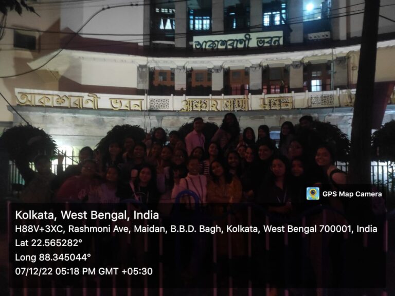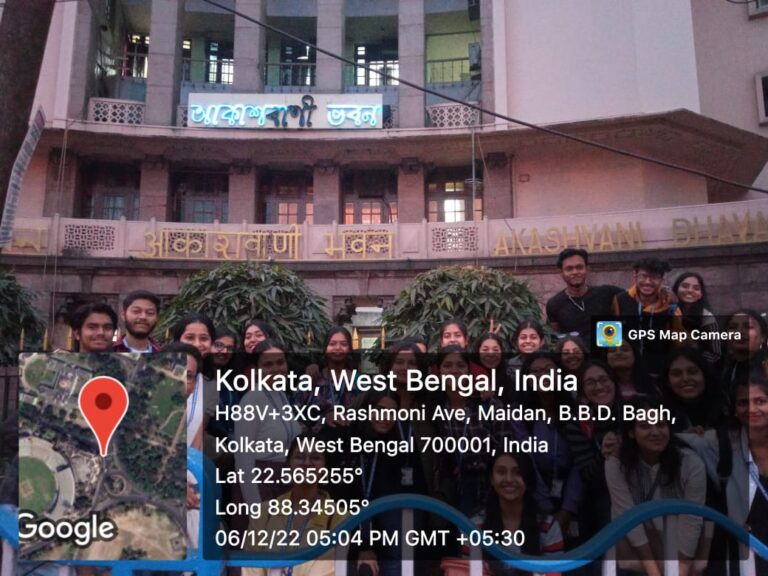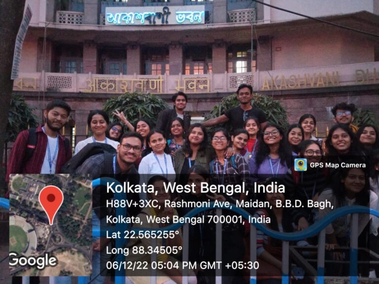 The JMC batch of 2020-23 visited the AIR (All India Radio) office at the Akashvani Bhawan, Kolkata on the 6th and 7th of December, 2022. The students were accompanied by the professors. We were shown the basic functioning of the radio in Kolkata along with the frequencies associated with AIR, the different departments, and lastly the Radio jockeying by the RJs. We were divided into groups and batch-wise the group was sent to the different rooms which consisted of the different stages where the radio recording and streaming were done. The people working at the office explained the different frequencies and channels and their respective reach throughout the city and country, along with their reach to smaller towns and villages in West Bengal. The recording room for the talk shows as well as the recording room for the songs and musical instruments was also shown to us. The editing room was the other place we had seen which consisted of all the necessary equipment needed for immediate editing as well as lengthy and elaborate editing. The next point was the room where the RJ was doing the live recording of the shows. The RJ recorded the shows playing the jingles, and songs and answering the questions sent by the listener to the RJs. The people at the AIR office were extremely professional and the visit gave every one of us immense knowledge about the Radio industry.
