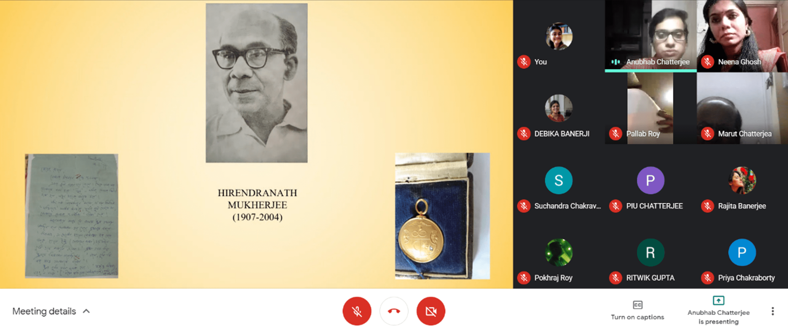The second presentation was also a joint one by Ms. Ghosh and Mr. Chatterjee where they talked about Exploring Solutions to Heriatge Outreach. They discussed about their association with Heritage Walk Calcutta, an academic-run, research-oriented company that provides walking tours of Kolkata for locals and tourists. Broadening the popular understanding of heritage, Mr. Chatterjee highlighted the need to preserve micro-heritage, focusing on the objects like medals, letters, paintings, passport and cabinet belonging to D. P. Chattopadhyay and Hirendranath Mukhopadhyay. Ms. Ghosh discussed about conservation of intangible heritage, focusing on the Durga Puja festival in Kolkata and the impact of the COVID-19 pandemic on the celebrations.