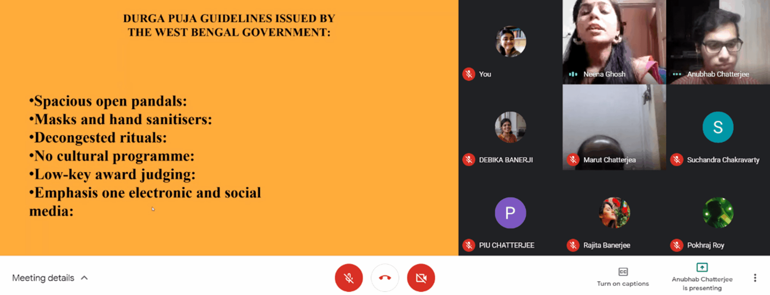 Ms. Neena Ghosh discussing the impact of the pandemic and the restrictions on Puja celebrations