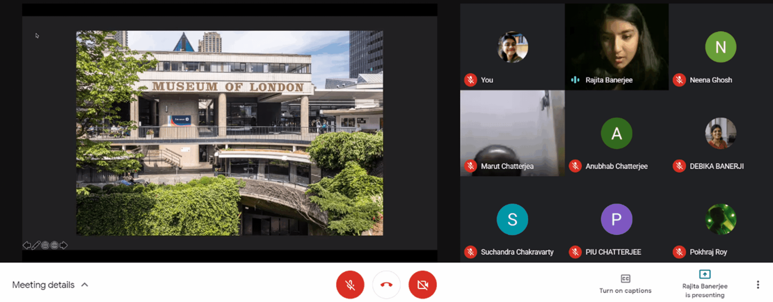 The Department of History and the Heritage Society of the Bhawanipur Education Society College organized a Students’ Webinar on “When the East meets the West: Stories of History and Heritage from India and London” on October 15, 2020, Thursday on Google Meet platform. The webinar had three speakers – Ms. Neena Ghosh and Mr. Anubhab Chatterjee, both students of the Department of History, The Bhawanipur Education Society College, Kolkata, and Ms. Rajita Banerjee, Student, Department of International Politics, School of Oriental and African Studies, London. Ms. Nidhi Shukla, PTT, Department of History, The Bhawanipur Education Society College, Kolkata moderated the session. The one-and-a-half-hour session (06:30 PM IST to 08:00 PM IST) was attended by more than 50 participants.