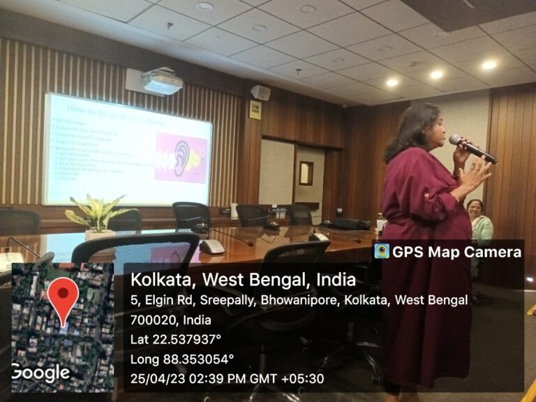 Dr. Agarwal started off with the evolution of the communication process and stressed on how the behaviour and tonal quality plays a crucial role in setting the mood of the conversation. She presented a video that highlighted the importance of proper gestures and eye-hand coordination as key elements in any discourse. The session involved a fun activity that aimed to promote teamwork and active listening skills among students.