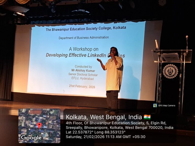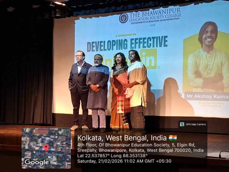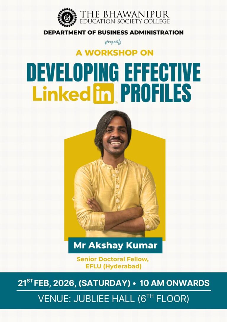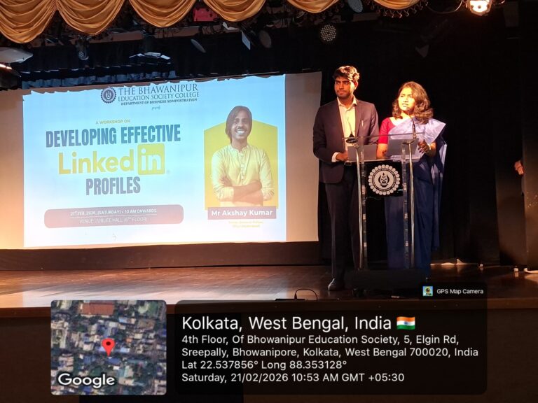 The Department of Business Administration at The Bhawanipur Education Society College, Kolkata, successfully organised a Workshop entitled, “Developing Effective LinkedIn Profiles” on 21st February, 2026 from 10:30 AM in the Jubilee Hall. The event attracted over 200 participants, with students from all the semesters.