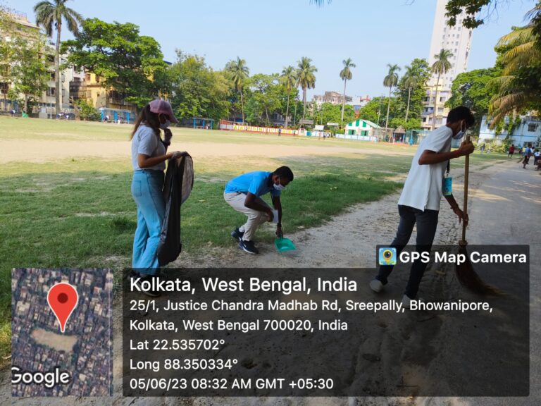 With this aim, The NSS unit of the Bhawanipur Education Society College organized a Cleanliness Drive & Sapling Distribution drive on the occasion of ‘ World Environment Day ‘ on 05/06/2023 at Northern Park at 7:30 am. The drive began with a marvelous speech by Prof. Dilip Shah, Dean of Students Affairs to address students about the importance of planting trees to keep the environment healthy, followed by felicitating Mr Ashim Basu, Councilor of Ward no. 70 & Navya Shyamosree for their support.
